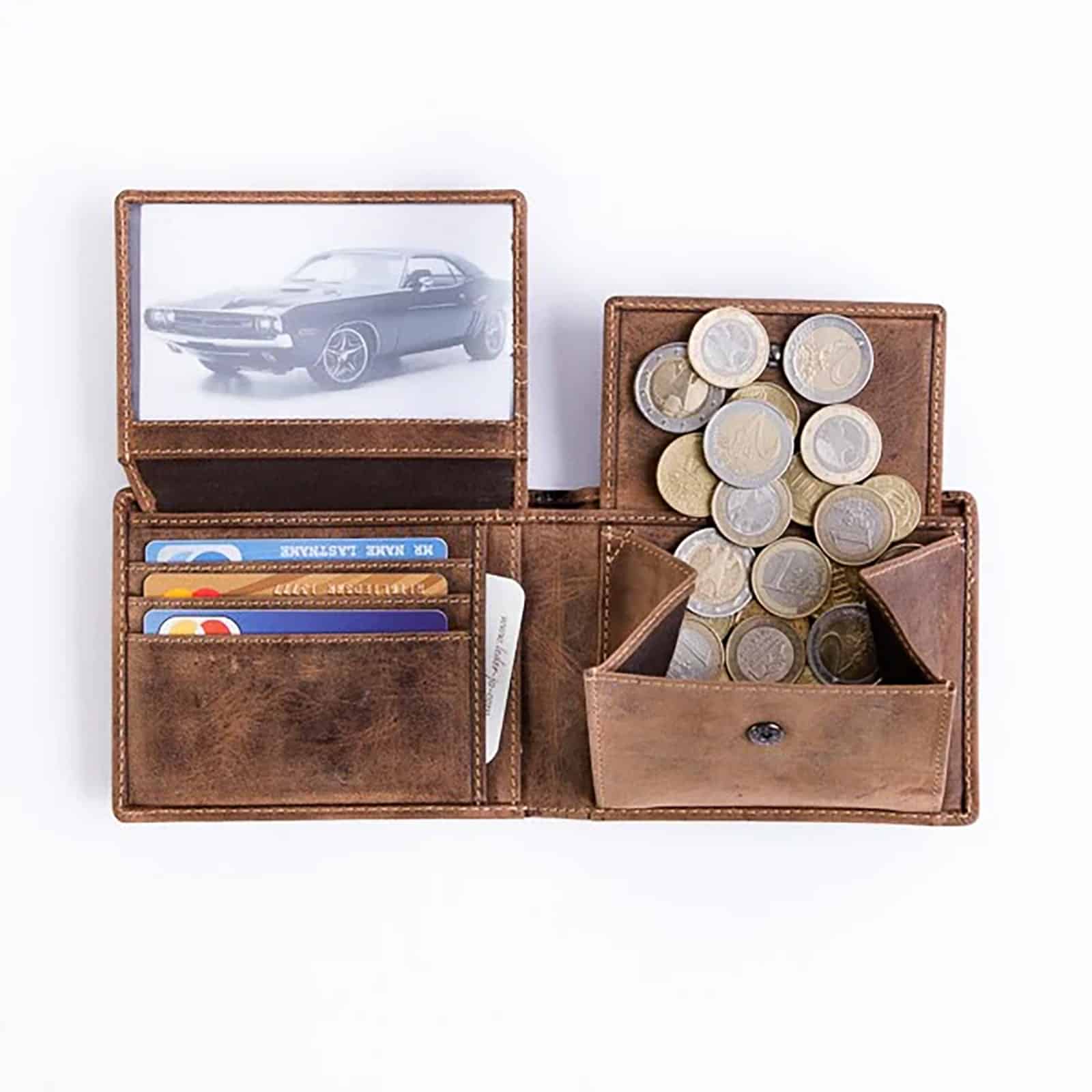 Geldbörse im Querformat mit Motiv aus Büffelleder.