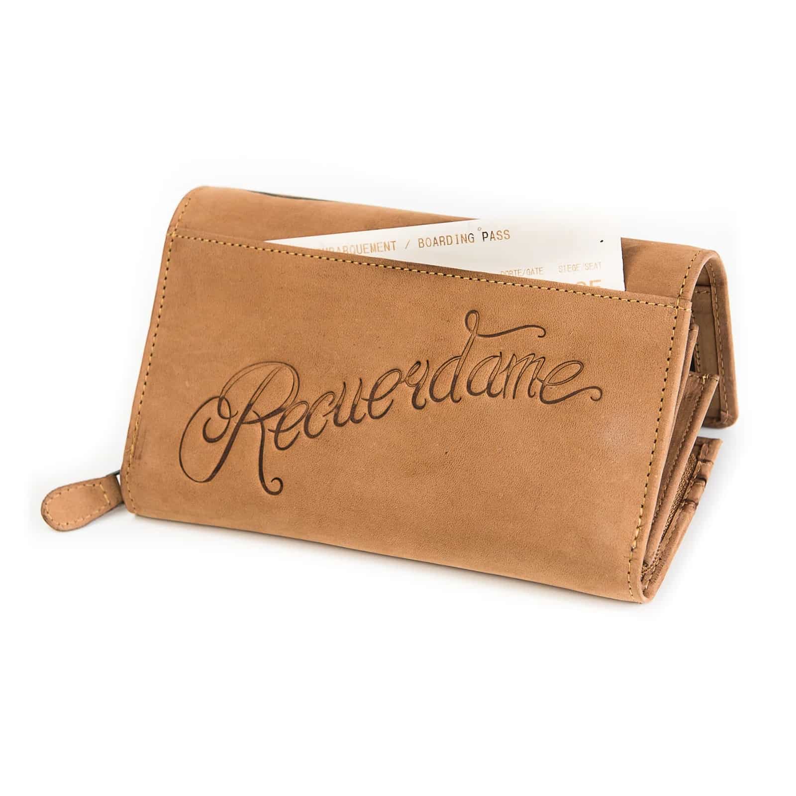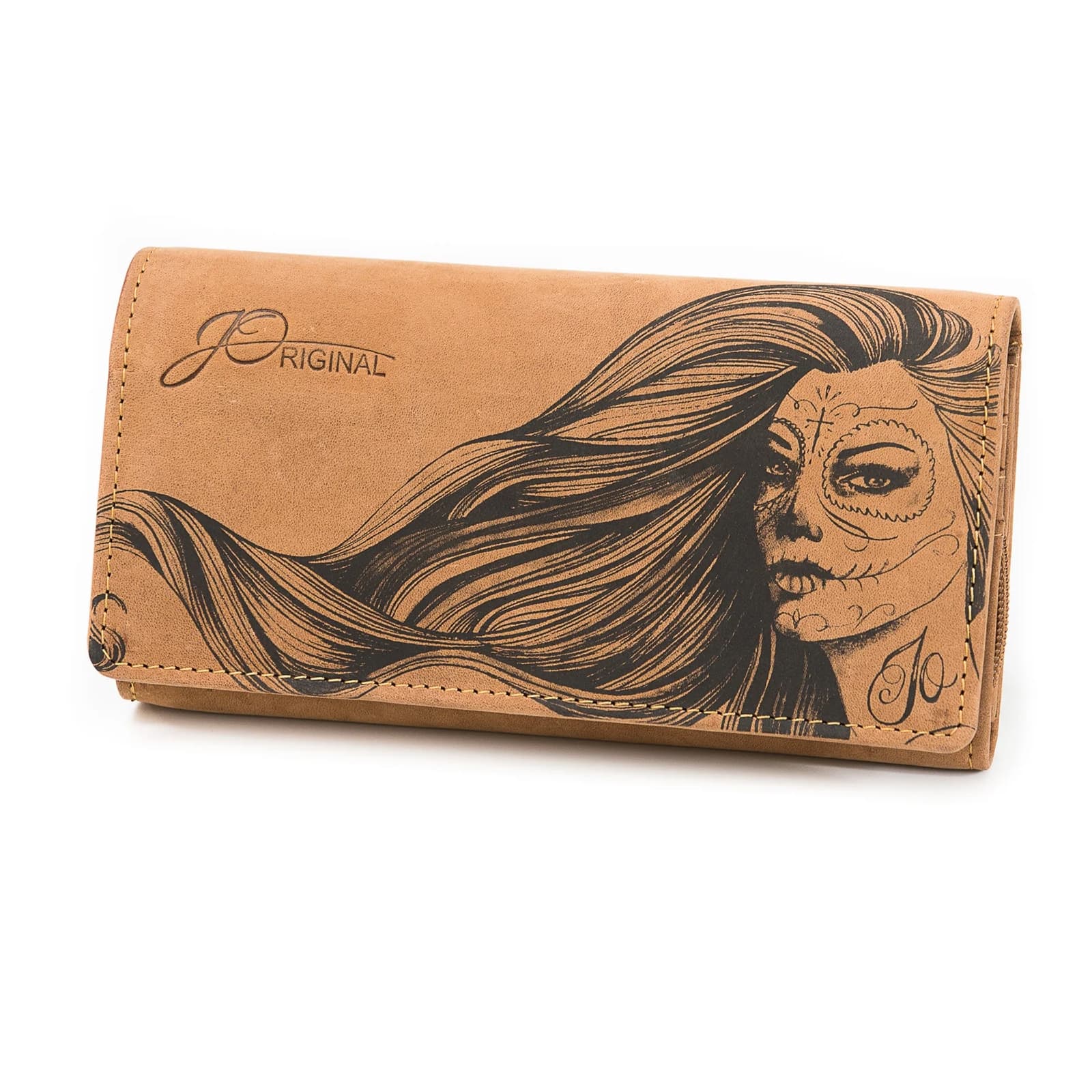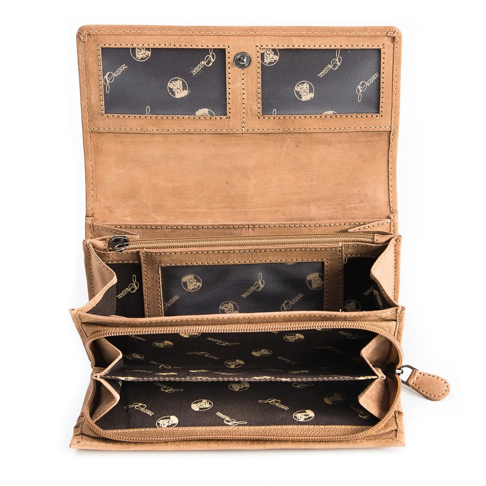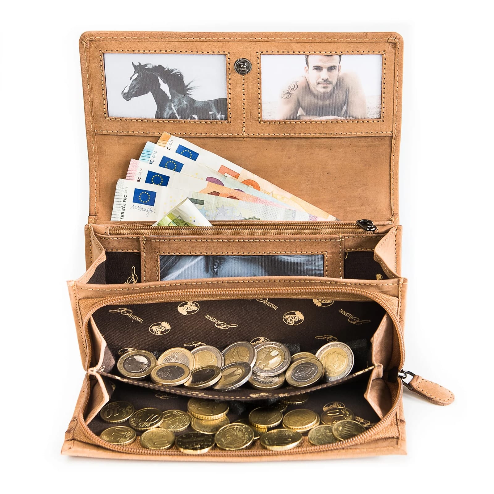 Große Geldbörse im Querformat mit Motiv aus Büffelleder.