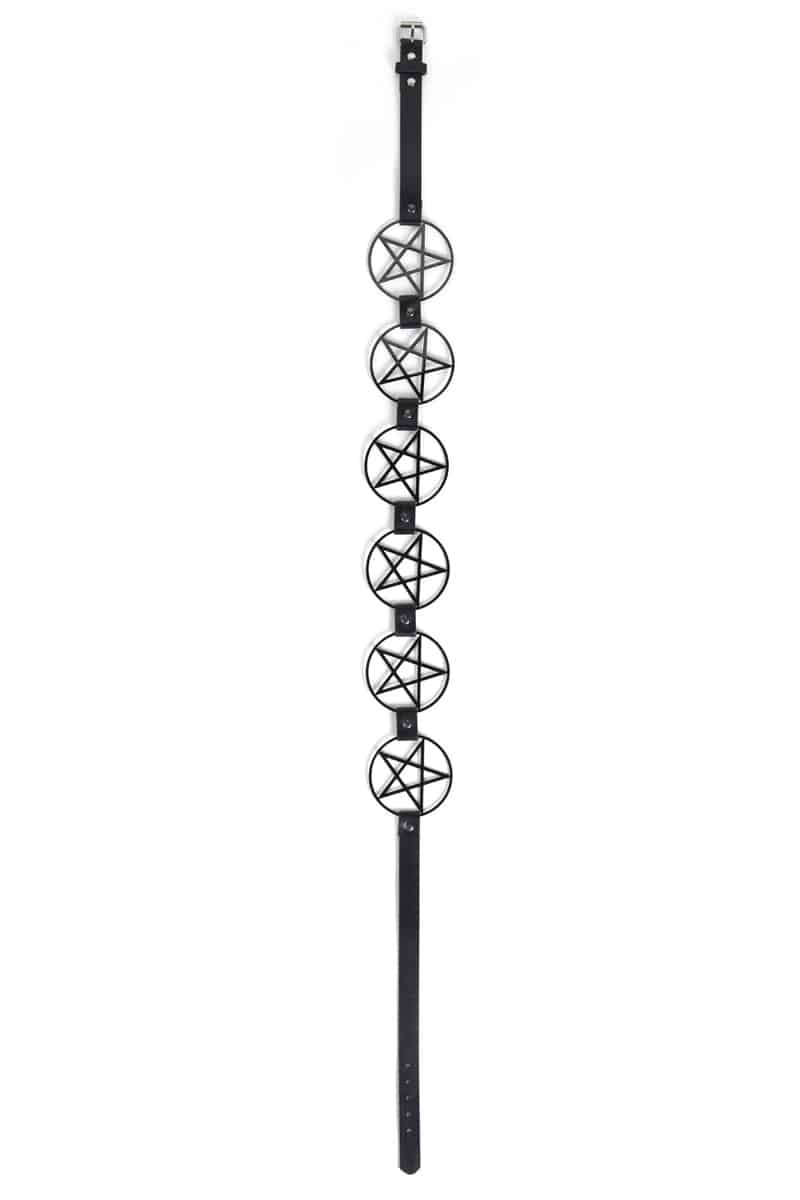 Witchy Kunstledergürtel mit Pentagrammen aus geschwärztem Edelstahl.