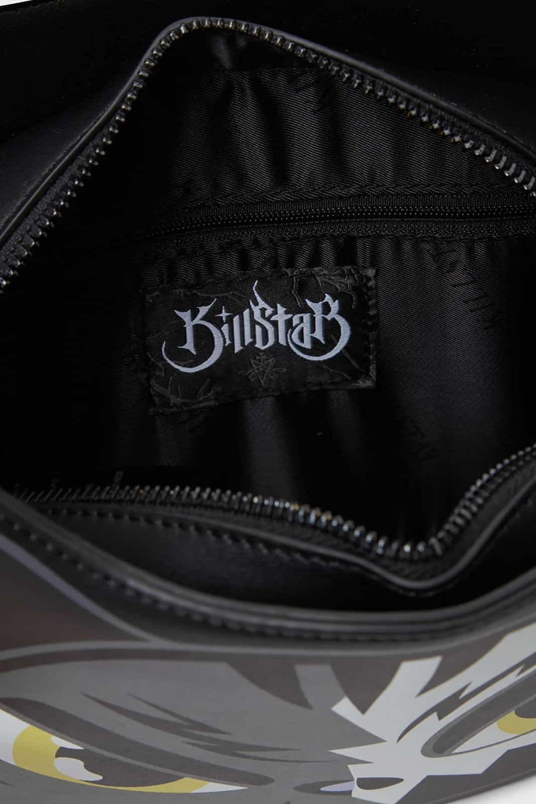 Handtasche in einzigartiger Katzenform mit Aufdruck Maneki-Neko auf der Rückseite. Mit Reißverschluß und verstellbarem Schulterriemen. Innen vollständig gefüttert und mit einer Reißverschlußtasche ausgestattet. Schwarze Metallbeschläge und ein toller Frontdruck ergänzen sich perfekt.