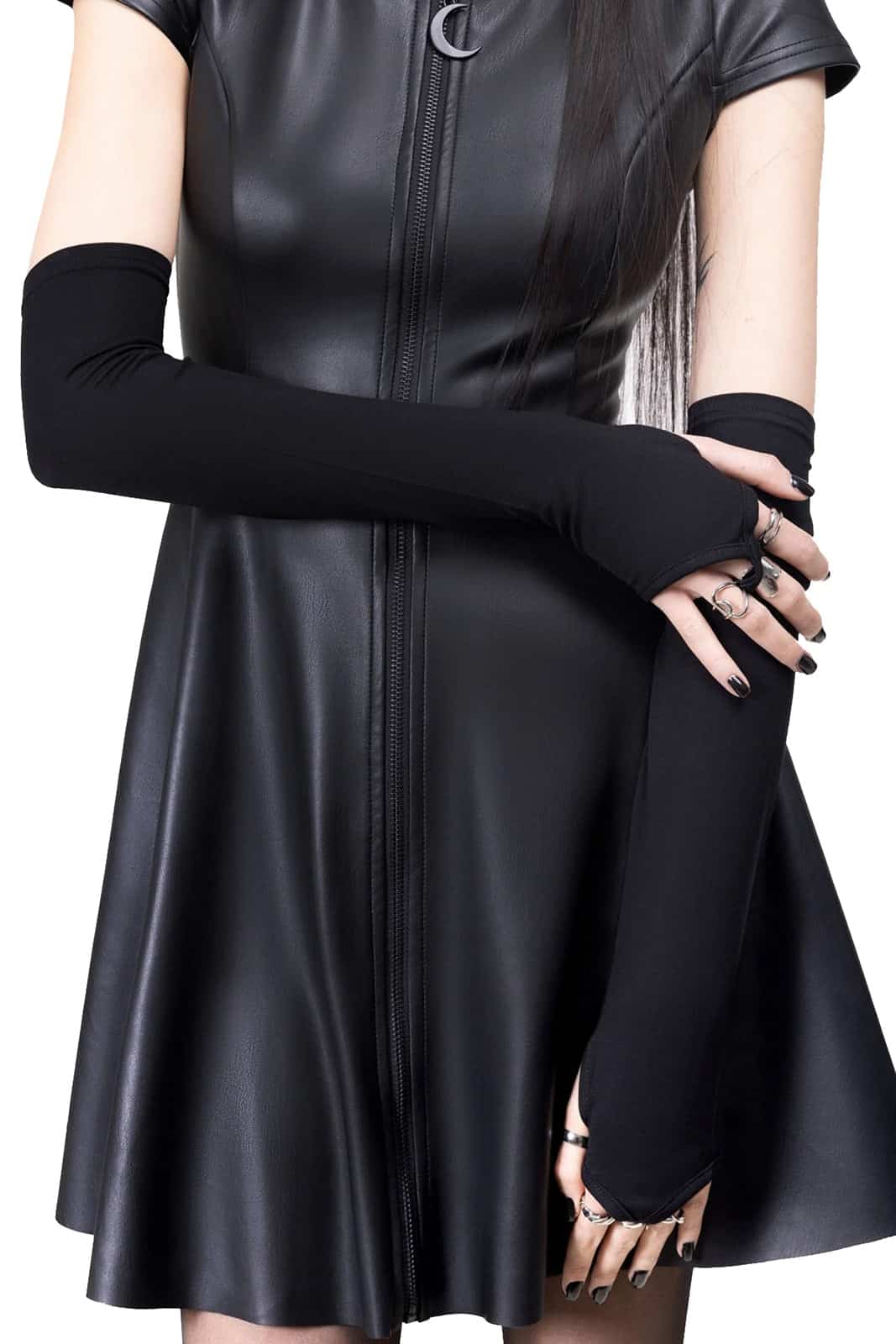 Lange, taillierte Armstulpen aus der Kihilist-Reihe mit Fingerlochdetaill. Gefertigt aus weichem Stretchmaterial.