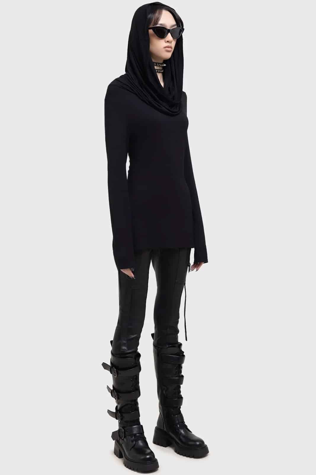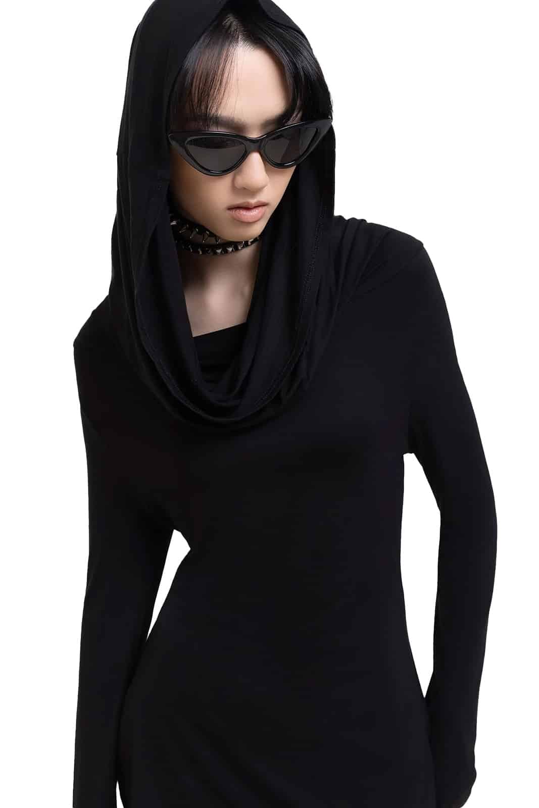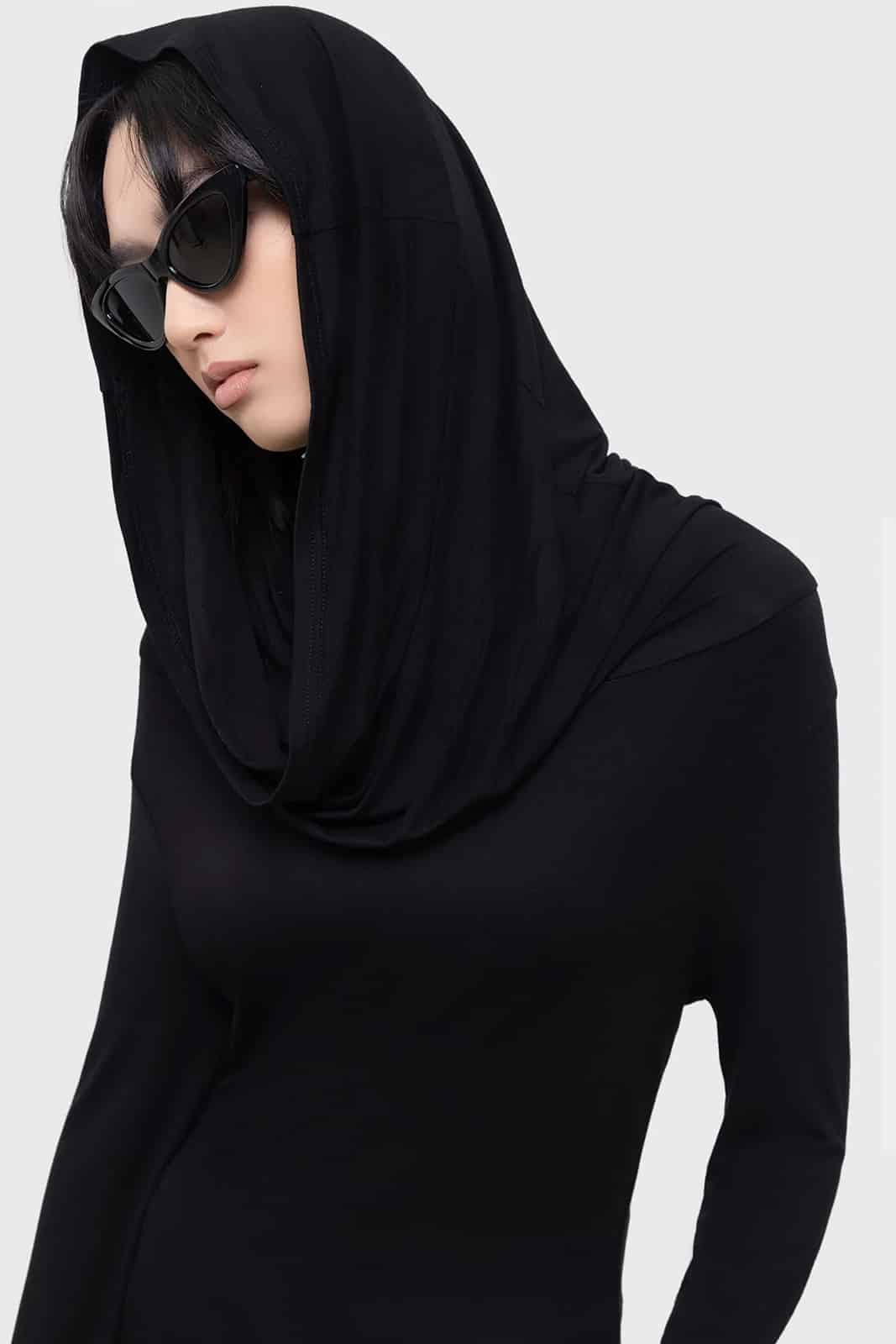 Vielseitiges Top aus weichem, dehnbarem Material mit langen Ärmel. Die dehnbare Kapuze kann sowohl schützend über den Kopf gezogen werden als auch wärmend über die Schultern gelegt werden.