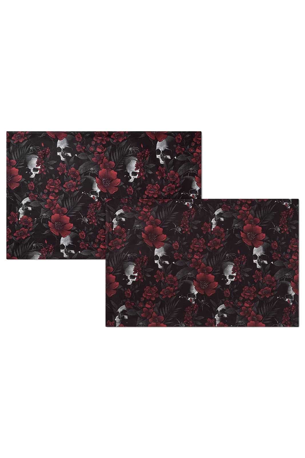 Set aus zwei Kissenbezügen mit Allover-Druck. Das weiche Material ist bedruckt mit Totenköpfen und Blumen.