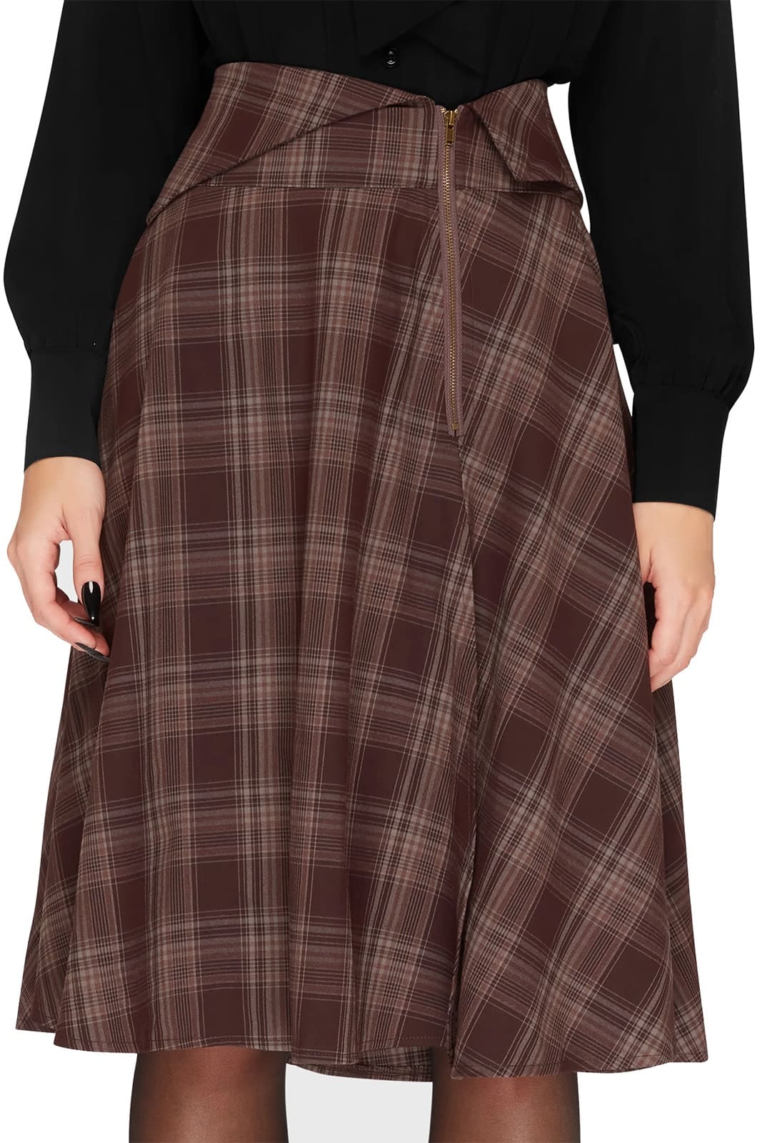 Mittellanger Damenrock mit klassischem braunem Tartanmuster