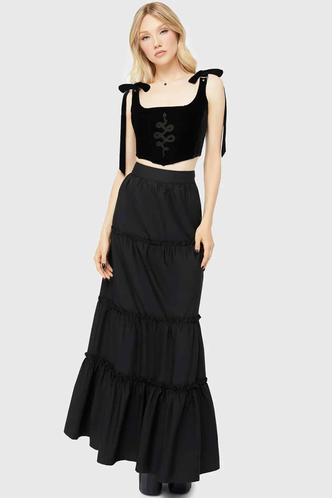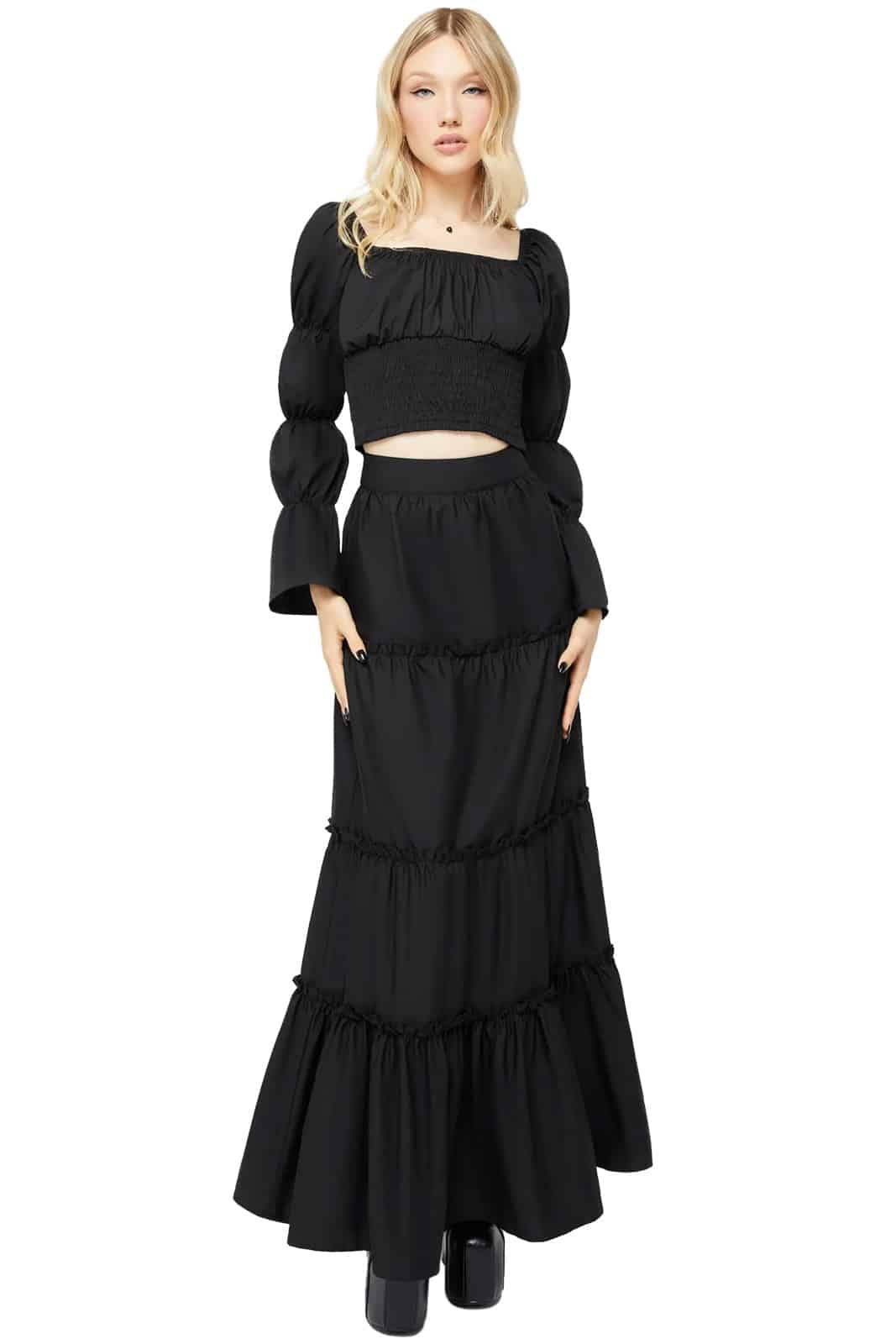 Ein fließender Maxirock, der mit seinem romantischen Lagenlook und femininer Silhouette überzeugt. Das leichte, klare Popeline-Material sorgt für ein angenehmes Tragegefühl, während die gestuften Bahnen mit zarten Raffnähten für verspielte Details sorgen. Die breite, strukturierte Taille mit Reißverschluss garantiert einen sicheren und schmeichelhaften Sitz – perfekt für elegante wie auch alternative Outfits.
