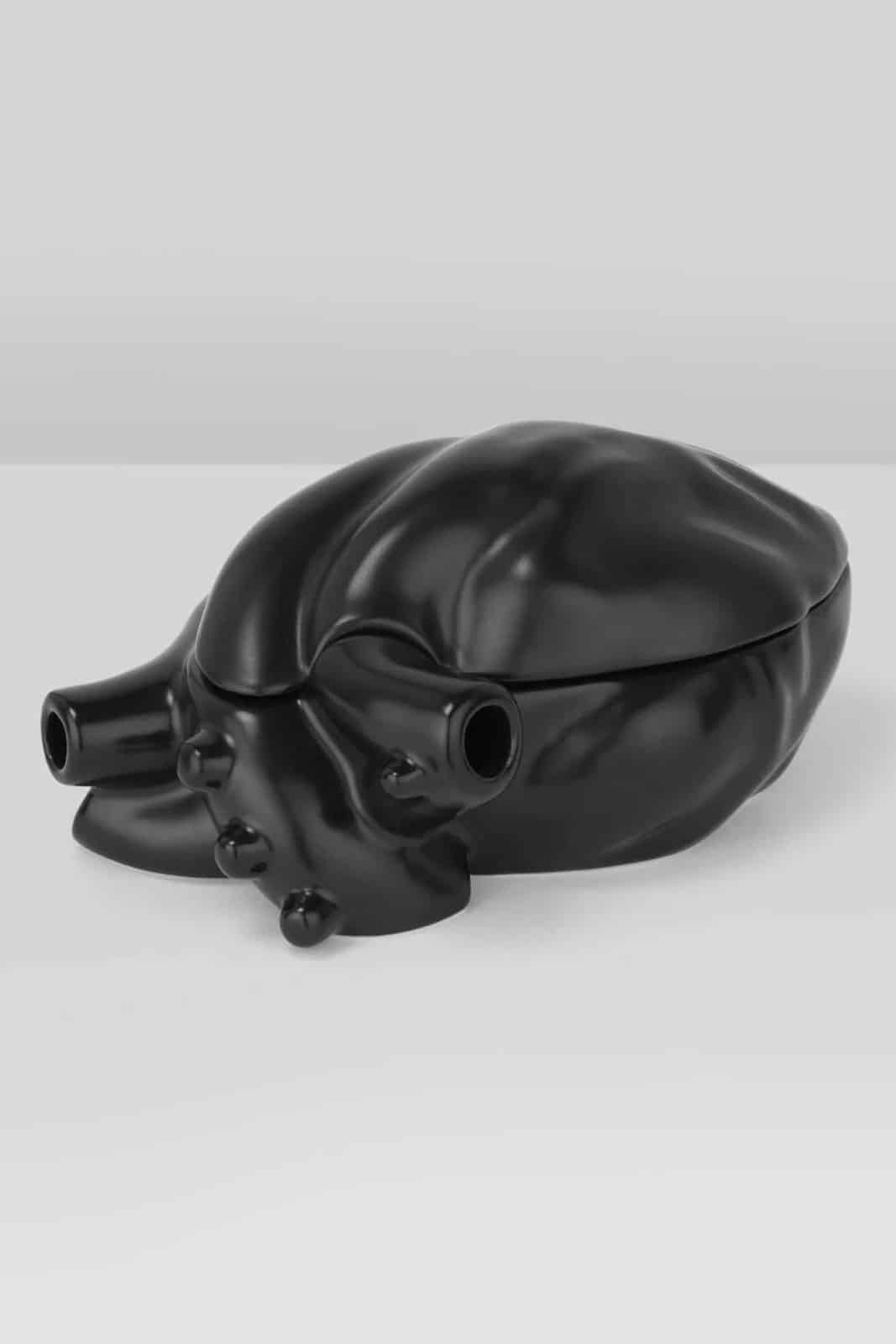 Statement Schale mit abnehmbarem Deckel aus schwarzer Kermaik in Form eines Herzens in aufregendem mattem Finish.