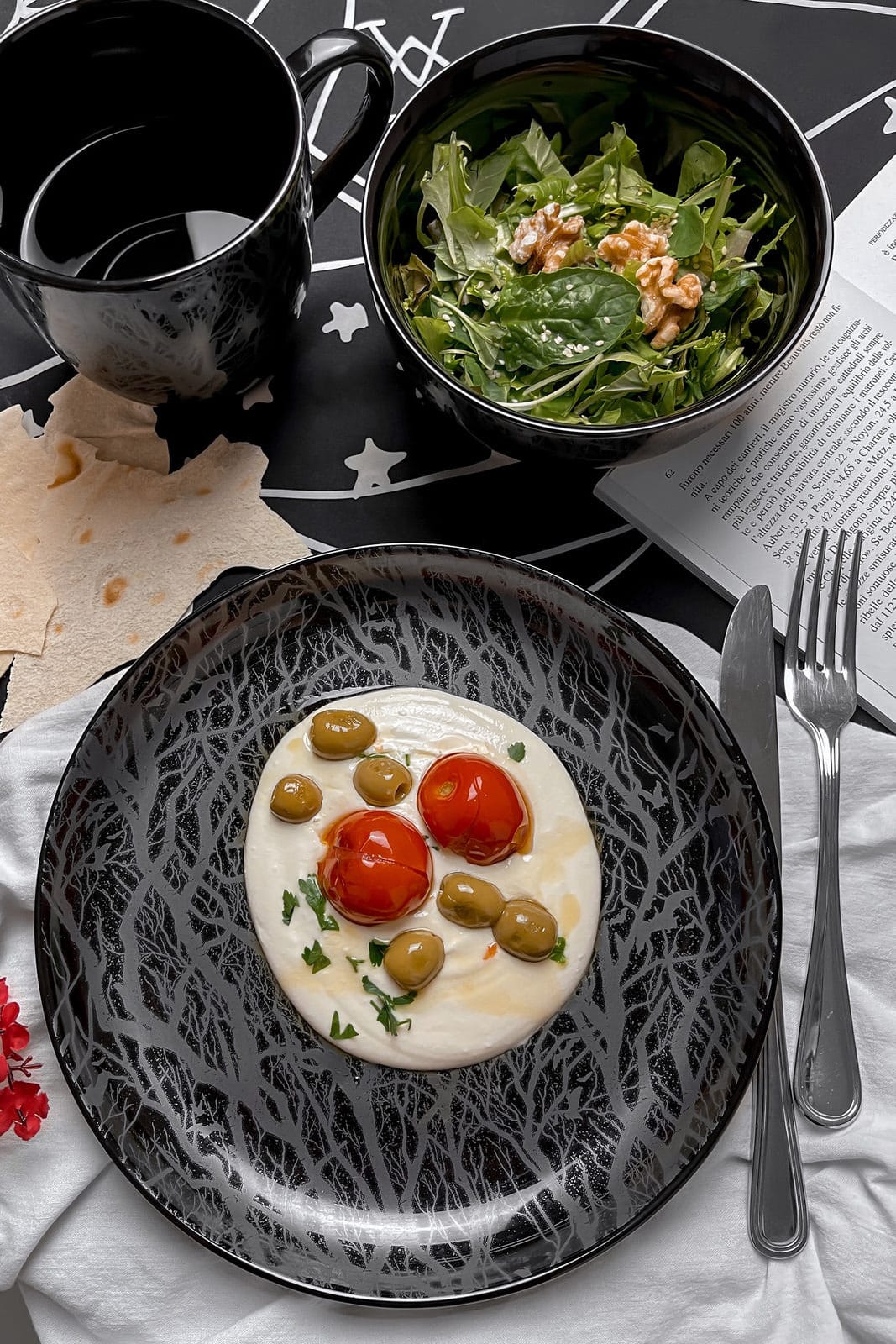 Großer aussagekräfter Teller mit individuell gestaltetem Gothic-Druck.