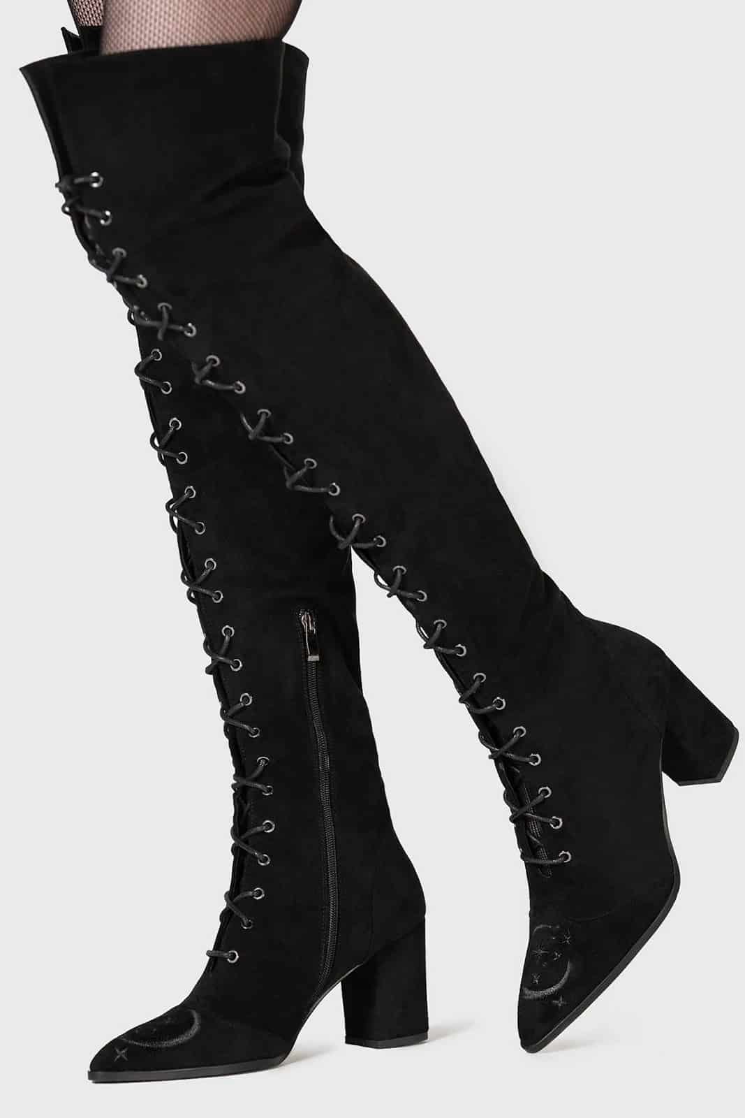 Die Stiefeletten Cosmic Souls werden all Deine Wünsche erfüllen – ganz in schwarzem, luxuriösem Kunstleder.