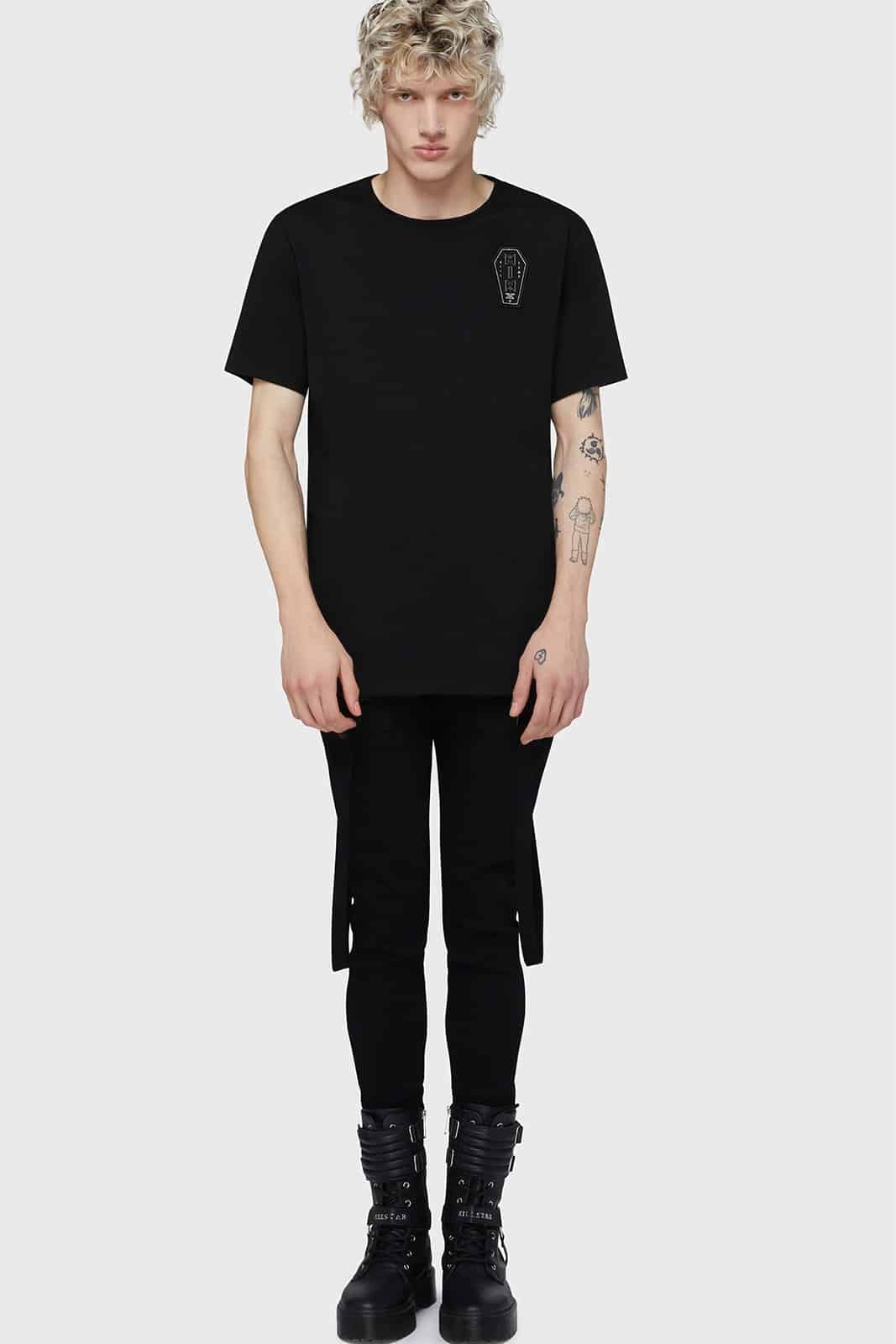 Dieses T-Shirt aus der exklusiven Motionless In White x KILLSTAR Kollaboration verbindet klassische Streetwear mit düsterer Band-Ästhetik. Der weiche Baumwollstoff sorgt für angenehmen Tragekomfort, während der markante Backprint mit Totenkopfmotiv und das dezente MIW-Applikationspatch auf der Brust einen starken visuellen Kontrast setzen. Ein zeitloses Piece für Fans von Darkwear, Alternative Fashion und kompromisslosem Style.