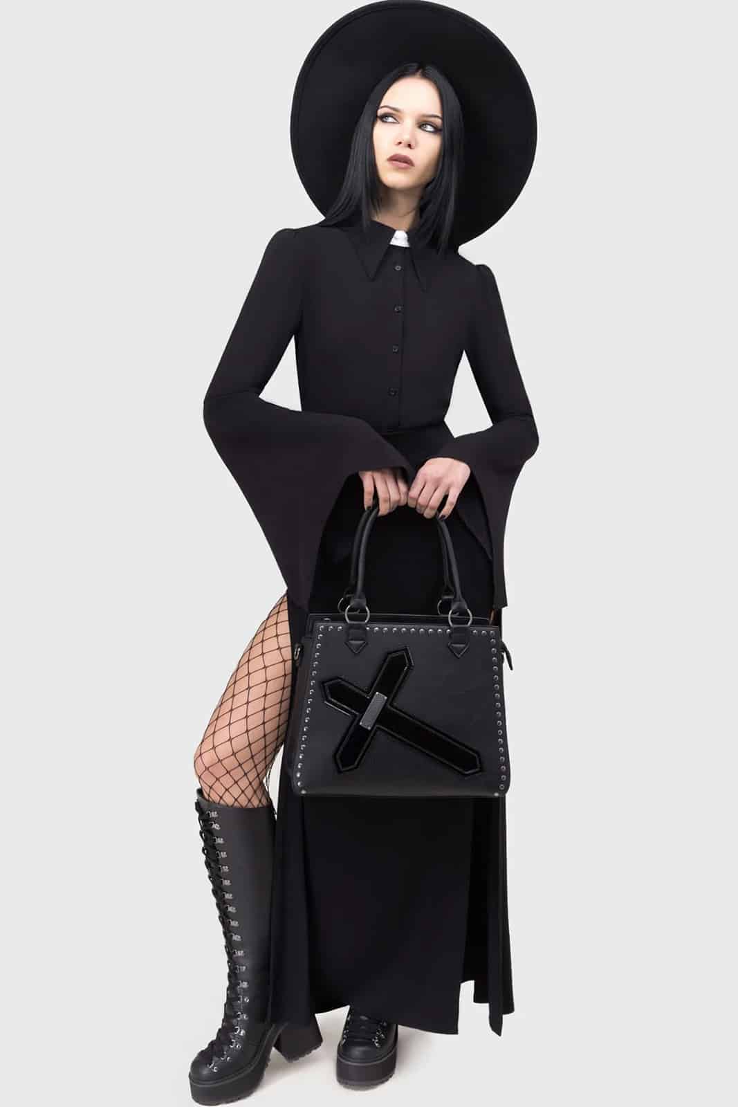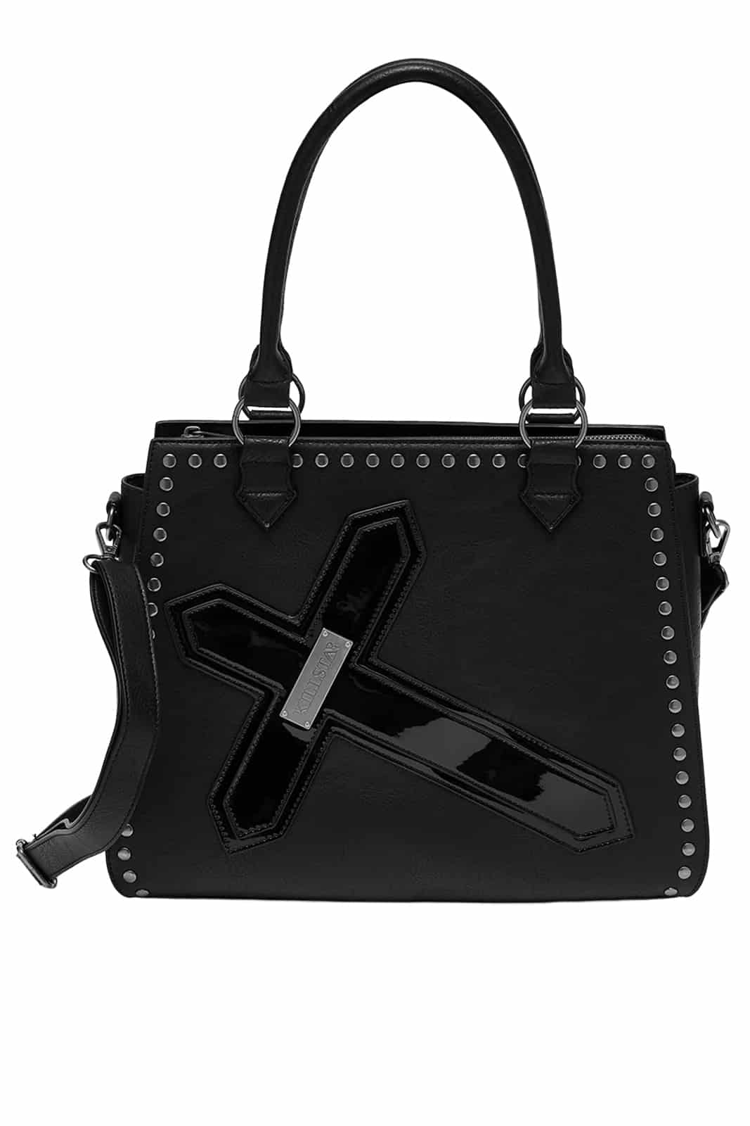 Lizenzierte Exorzist-Handtasche für alle Fans düsterer Styles und Horror-Klassiker. Gefertigt aus glattem Kunstleder mit markantem Kreuz-Detail, Nietenbesatz und praktischen Tragemöglichkeiten vereint sie ikonisches Design mit Funktionalität. Ob als Handtasche oder mit dem verstellbaren Schulterriemen getragen – dieses Accessoire ist ein klares Statement.