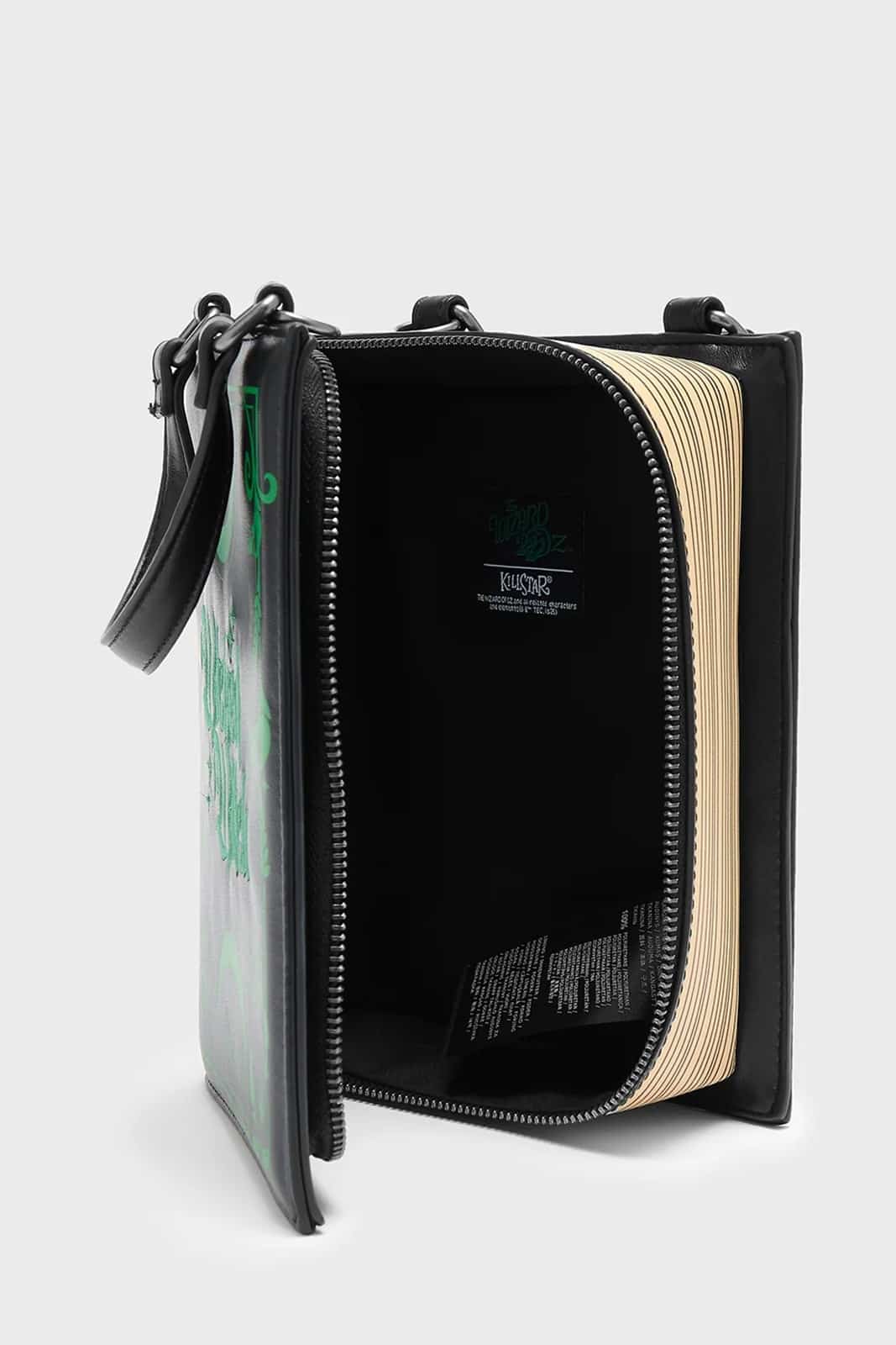Die Truly Wicked Tasche ist ein echtes Statement-Piece für alle, die Magie, Dunkelromantik und ikonisches Design lieben. In Form eines mystischen Buches gestaltet und mit auffälliger grüner „Wicked Witch“-Stickerei versehen, zieht sie garantiert alle Blicke auf sich. Die Kombination aus glattem PU-Material, dekorativen Details und Kettenriemen macht sie zum perfekten Begleiter für besondere Looks – ob Festival, Event oder Alltag mit Attitude.