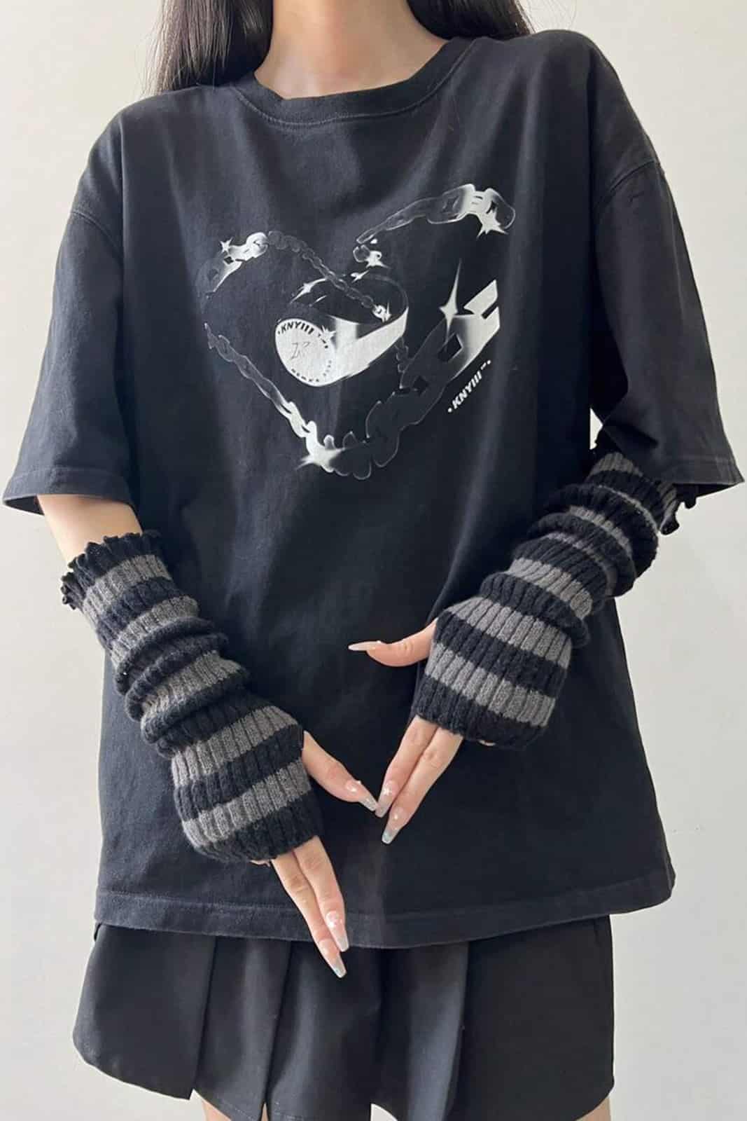 Gestreifte Armstulpen im Grobstrick mit Daumenloch