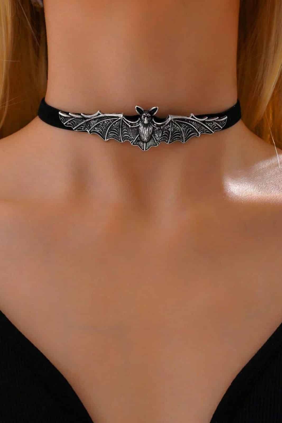 Ein mystischer Choker für düstere Seelen: Das schwarze Polyesterband ziert eine detailreiche Fledermaus mit ausgebreiteten Flügeln und verleiht deinem Look sofort eine dunkle, verführerische Aura. Perfekt für Gothic-Outfits, nächtliche Abenteuer oder als Statement-Piece, das die Faszination der Nacht symbolisiert.