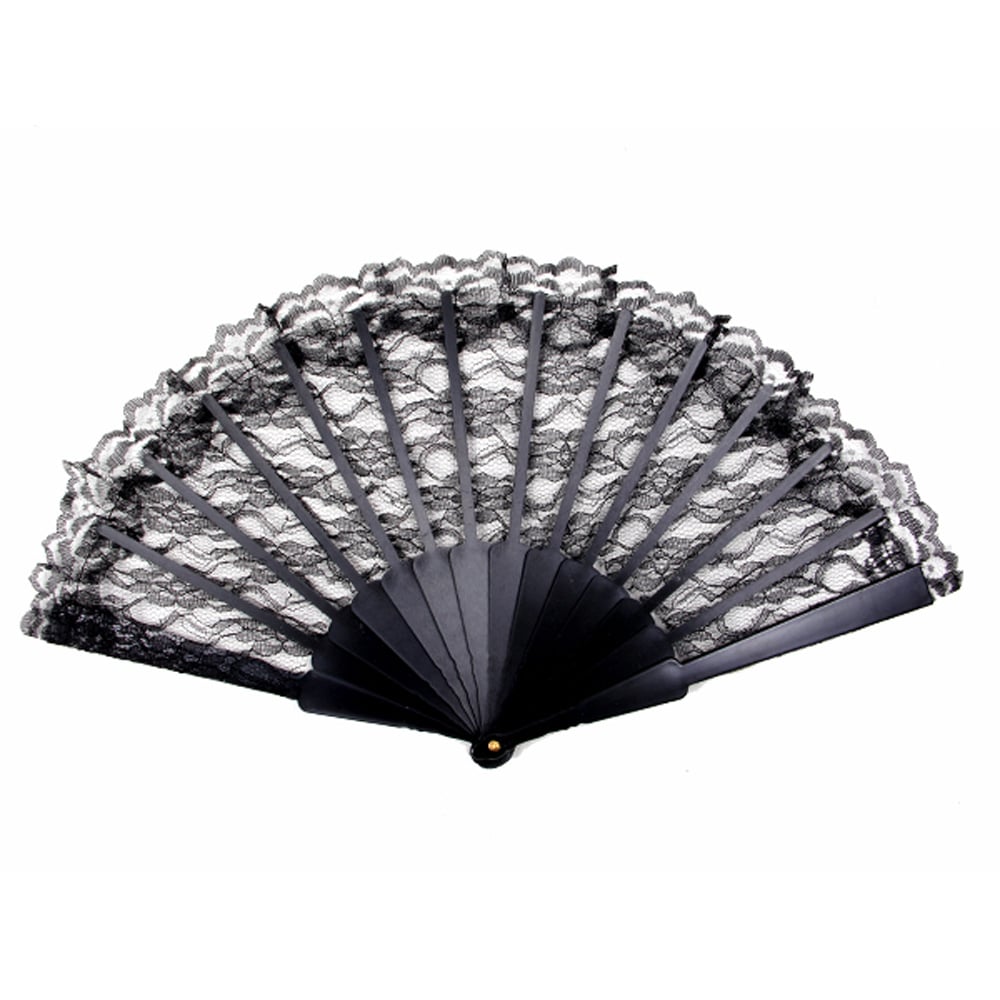 Fächer aus feiner, floraler Spitze mit durchbrochen gearbeitetem Kunststoffgriff.