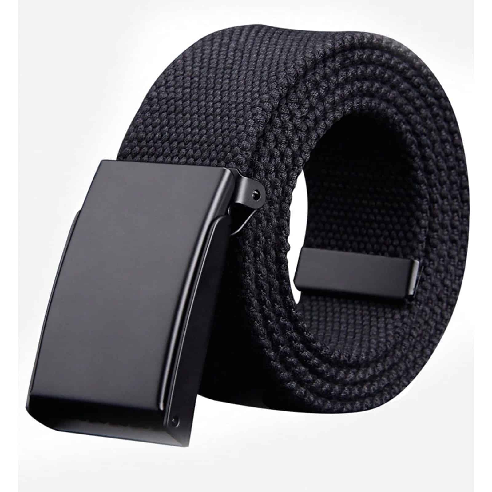 Einfach gehaltener Stoffgürtel aus strapazierfähigem Polyester mit Metallschnalle.