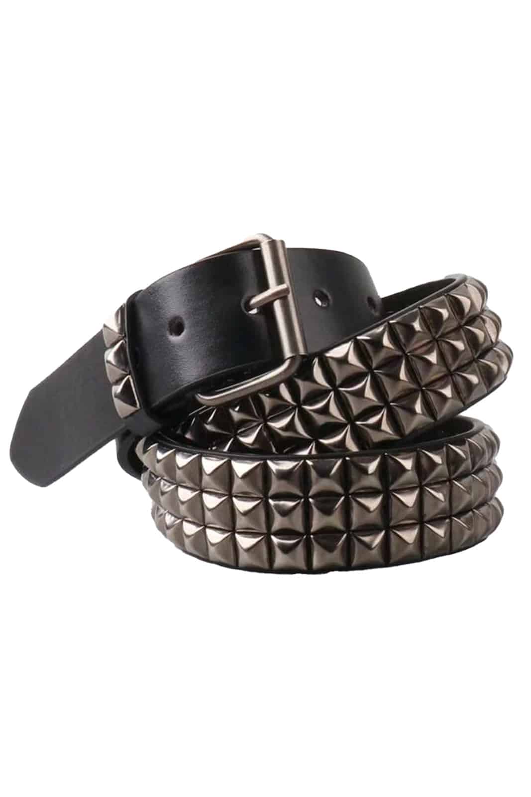 Kunstledergürtel mit klassischer Schnallee mit drei Reihen silber glänzender Pyramidennieten.