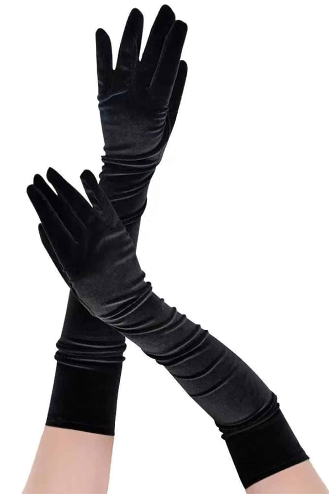 Edle, lange Samthandschuhe in tiefem Schwarz – perfekt für elegante Abendlooks, Kostüme oder dramatische Gothic-Outfits. Weich, anschmiegsam und mit schönem Glanz. Ein echter Eyecatcher.