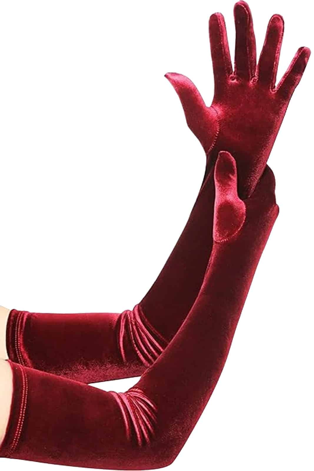 Edle, lange Samthandschuhe in tiefem Rot – perfekt für elegante Abendlooks, Kostüme oder dramatische Gothic-Outfits. Weich, anschmiegsam und mit schönem Glanz. Ein echter Eyecatcher.