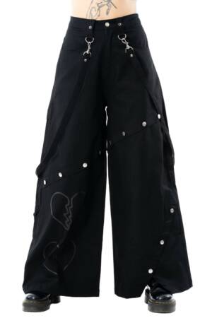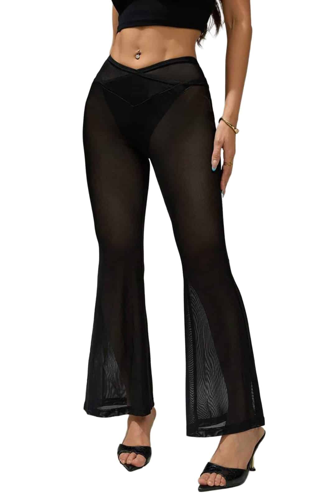 Nox Varia ist eine Huldigung an die Nacht in ihrer sinnlichsten Form – eine hochtaillierte Damenhose aus feinem Netzgewebe, das wie ein Schleier aus Schatten den Körper umhüllt. Die weiche Polyestermischung legt sich sanft auf die Haut, während der gekreuzte Bund die Taille dramatisch akzentuiert – wie ein stilisierter Dolch im Stoff.