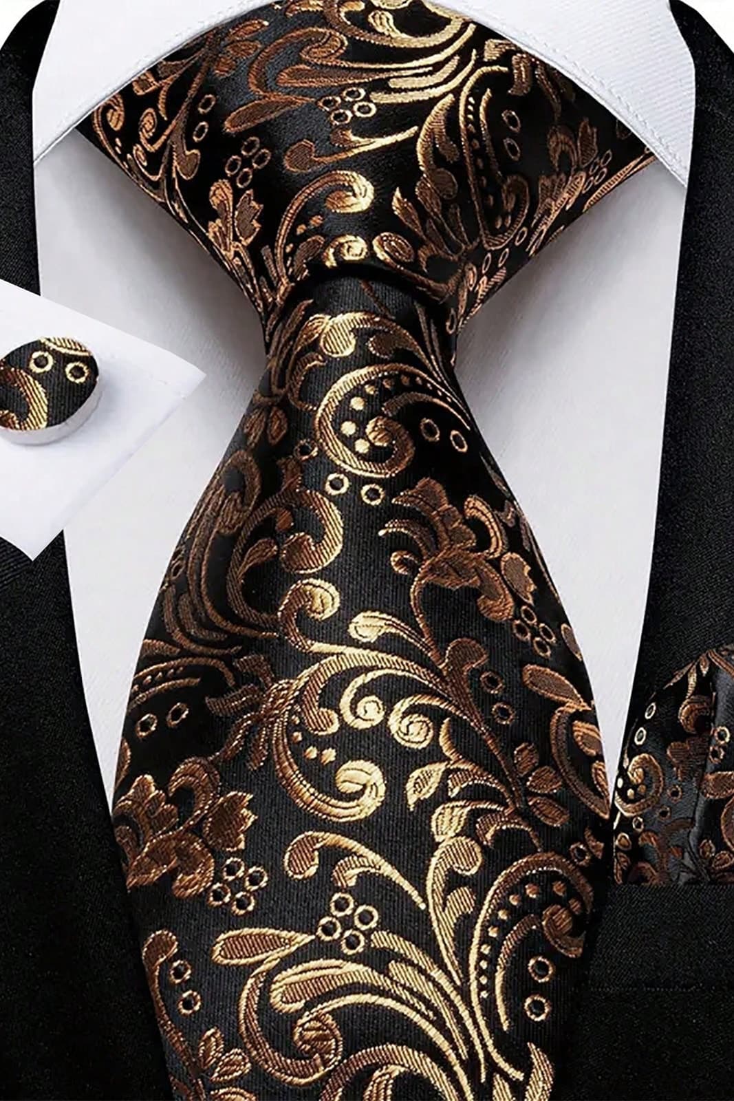 Diese elegante Krawatte kombiniert tiefes Schwarz mit reich verzierten, barocken Gold-Brokatornamenten und setzt damit einen edlen, festlichen Akzent zu jedem Anzug. Perfekt für besondere Anlässe und stilvolle Auftritte.