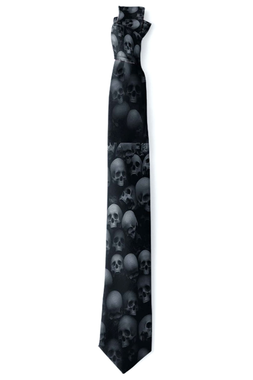 Gruselige Krawatte bedruckt mit zahlreichen Totenschädeln.