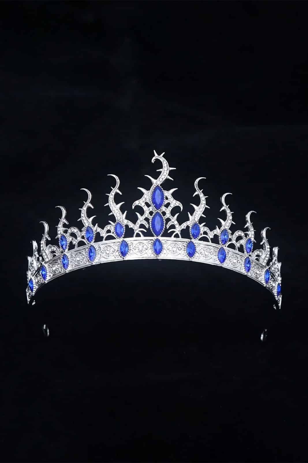 Wunderschöne Krone mit silbernem Grundkörper und blauen großen Steinen.