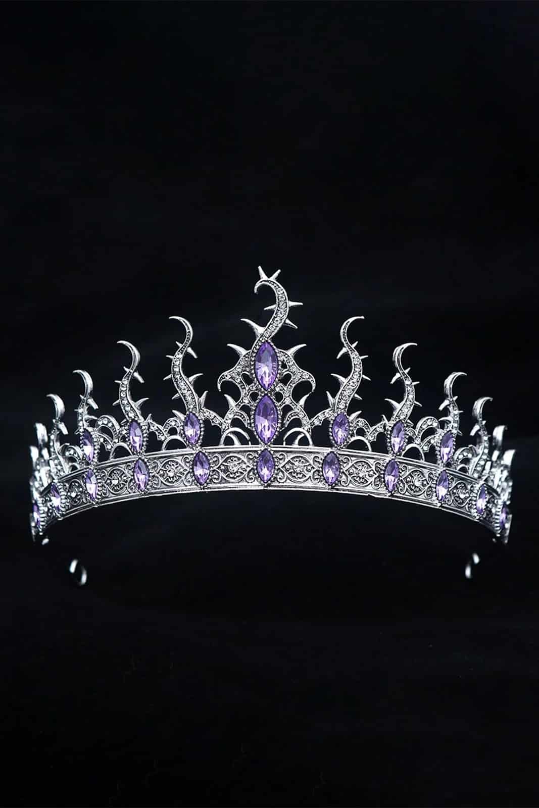 Wunderschöne Krone mit silbernem Grundkörper und lilanen großen Steinen.