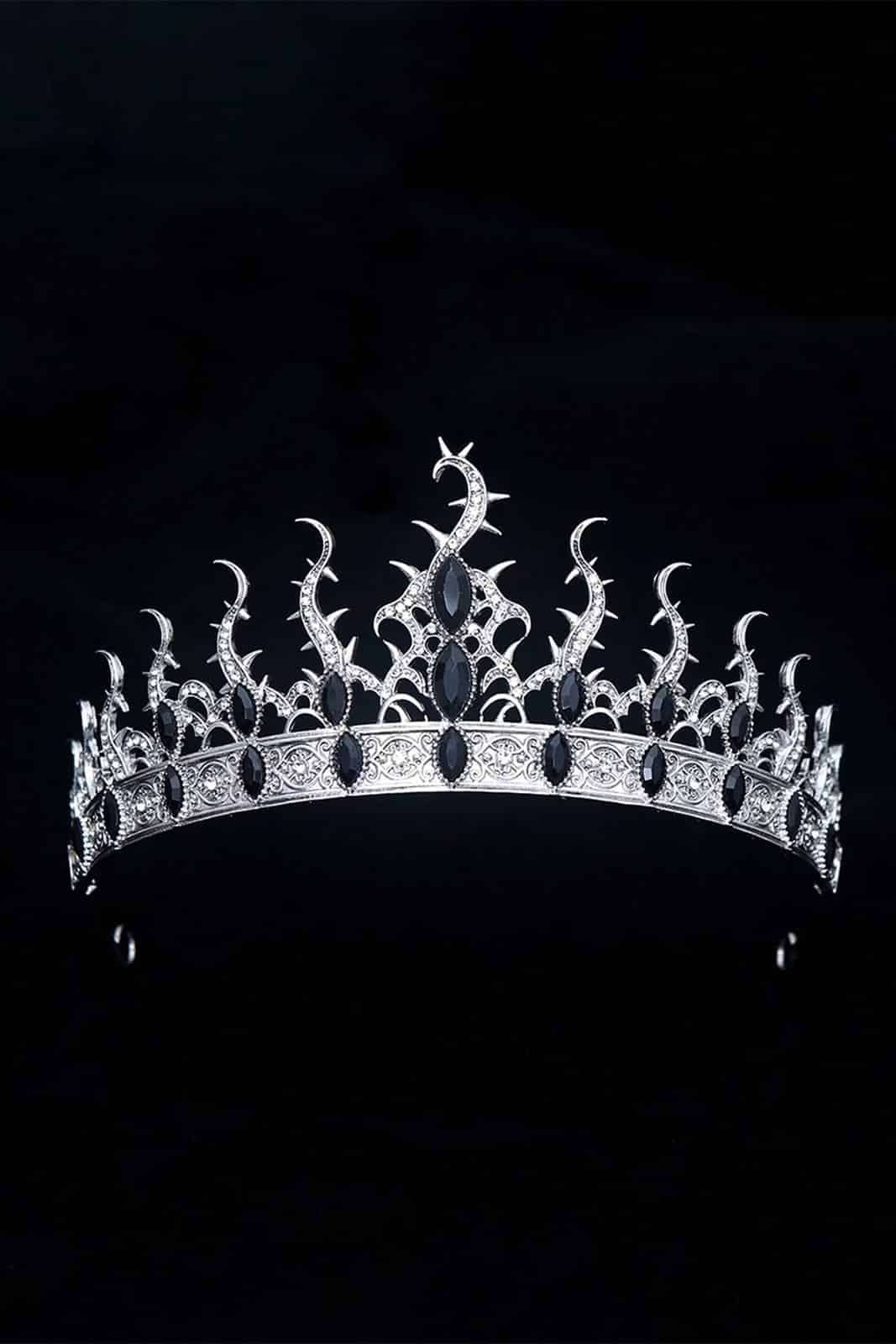 Wunderschöne Krone mit silbernem Grundköprer und schwarzen großen Steinen. Einheitsgröße