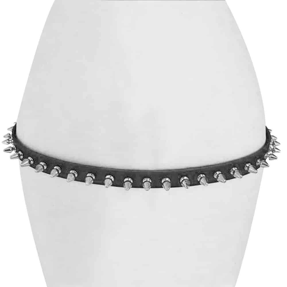 Ledergürtel mit einer Reihe silberfarbener Killernieten.