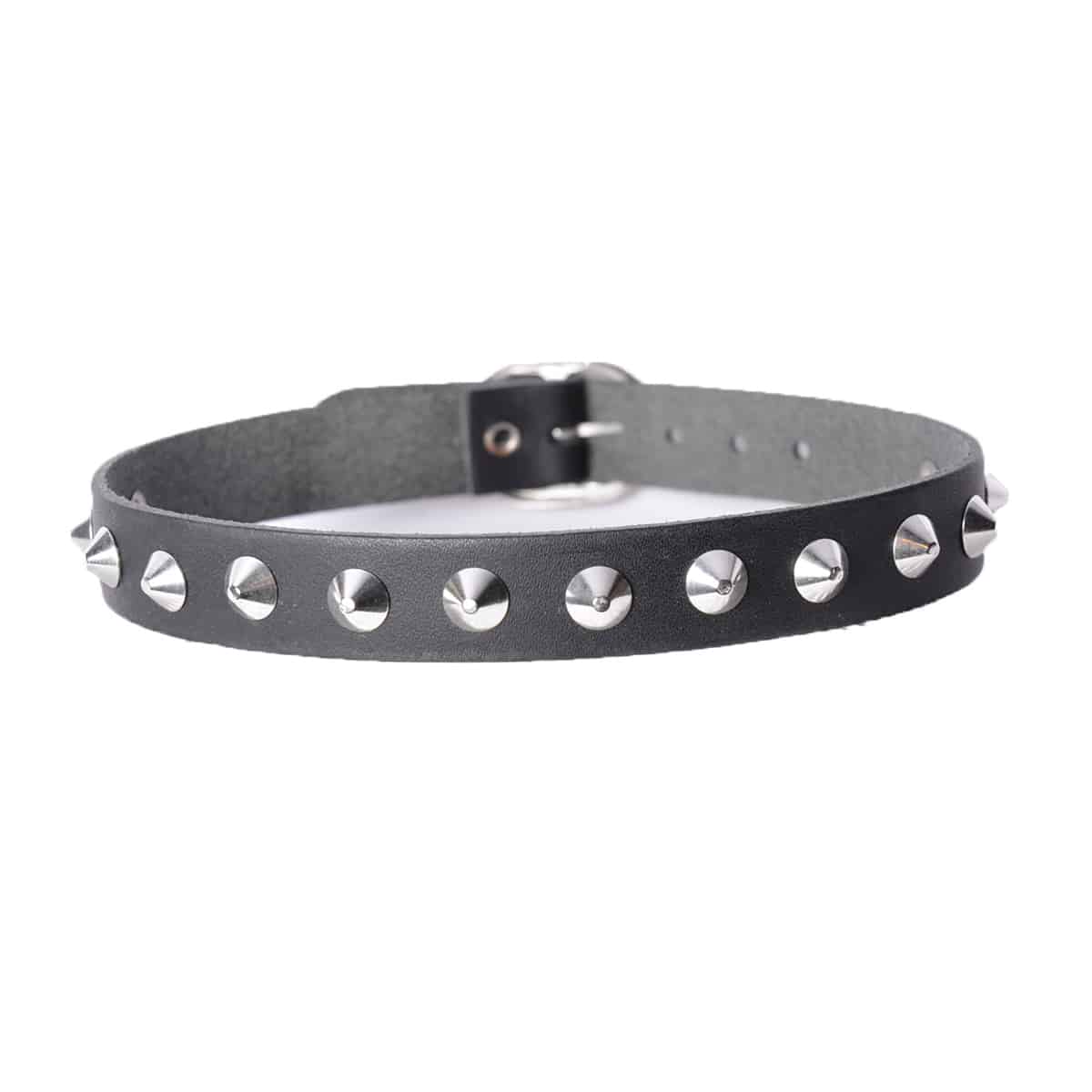 Halsband aus Echtleder mit einer Reihe Spitznieten.