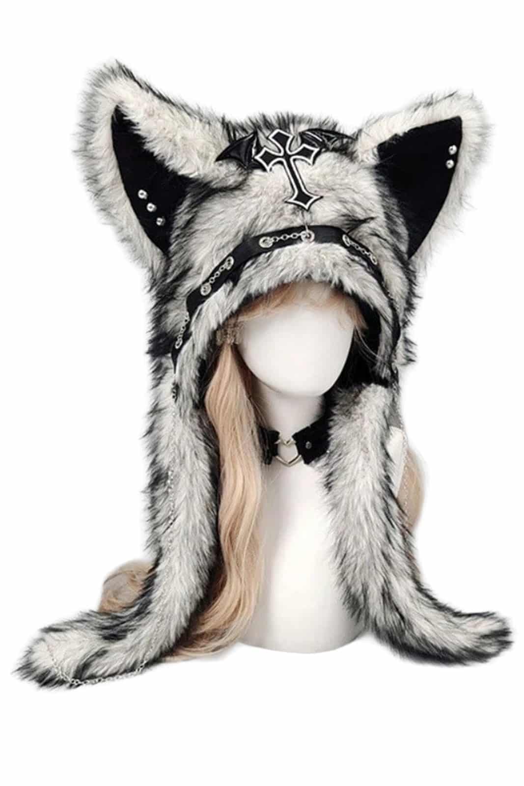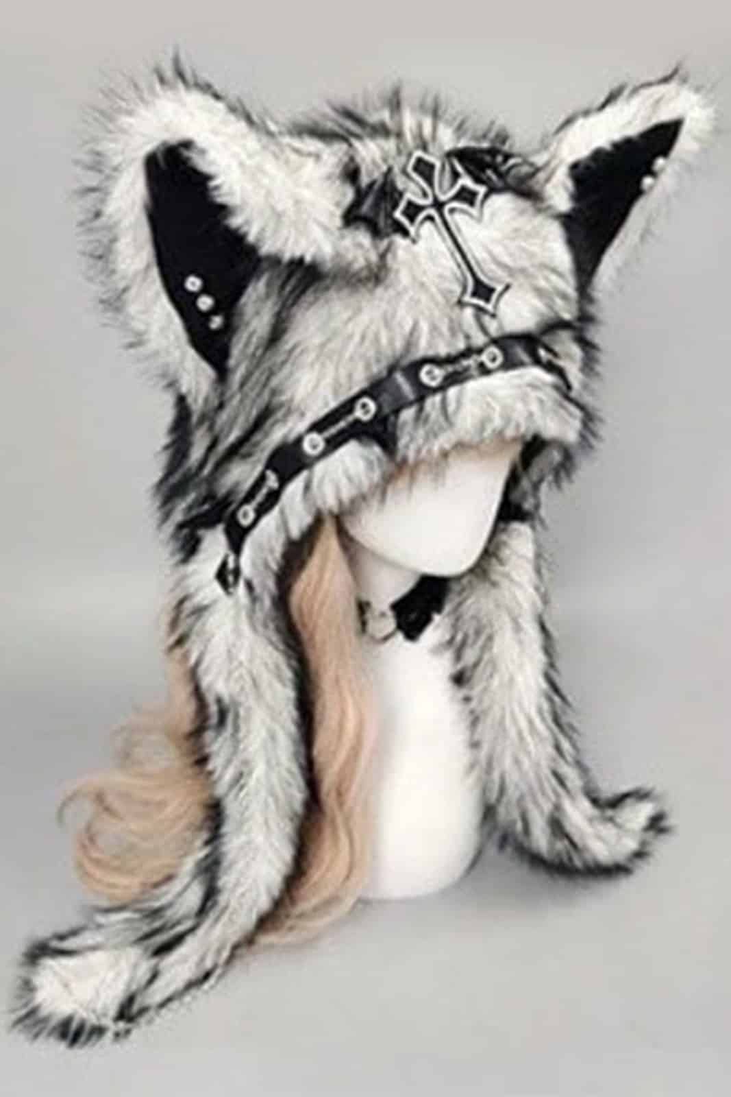 Diese auffällige Kunstfell-Kapuzenmütze kombiniert tierisch-verspieltes Design mit düsteren Details. Die großen Ohren, die langen Fellseiten und die markanten Metall- und Kettenakzente verleihen ihr einen wilden, mystischen Look – perfekt für Festivals, Streetwear oder als Highlight in winterlichen Outfits. Dank weichem Material trägt sie sich angenehm und hält Kopf und Ohren warm, ganz ohne Bezug zu einer bestimmten Farbe.