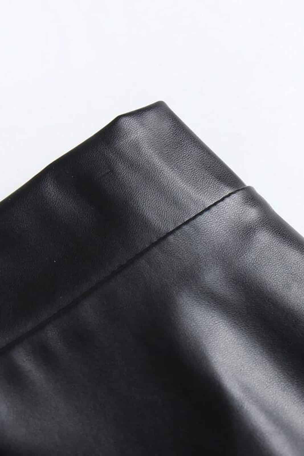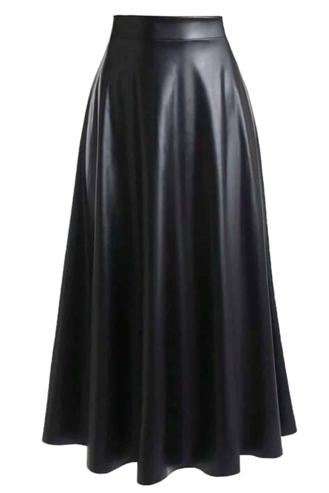 Knöchellanger Rock aus dehnbarem Material mit elastischem Bund. Das matte Lederimitat schimmert leicht und trägt sich bequem auf der Haut.