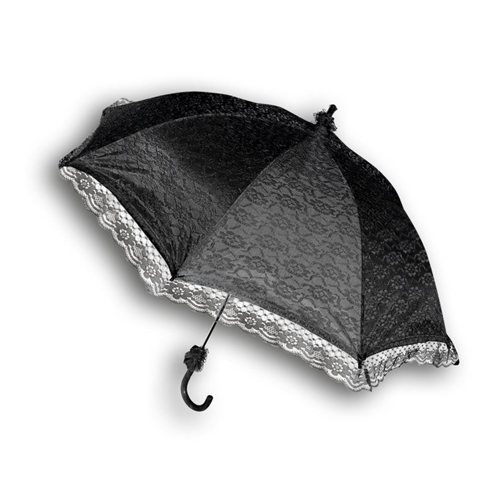 Gothic Schirm mit schwarzem Spitzenoverlay. Perfekt bei Regen und Sonne.