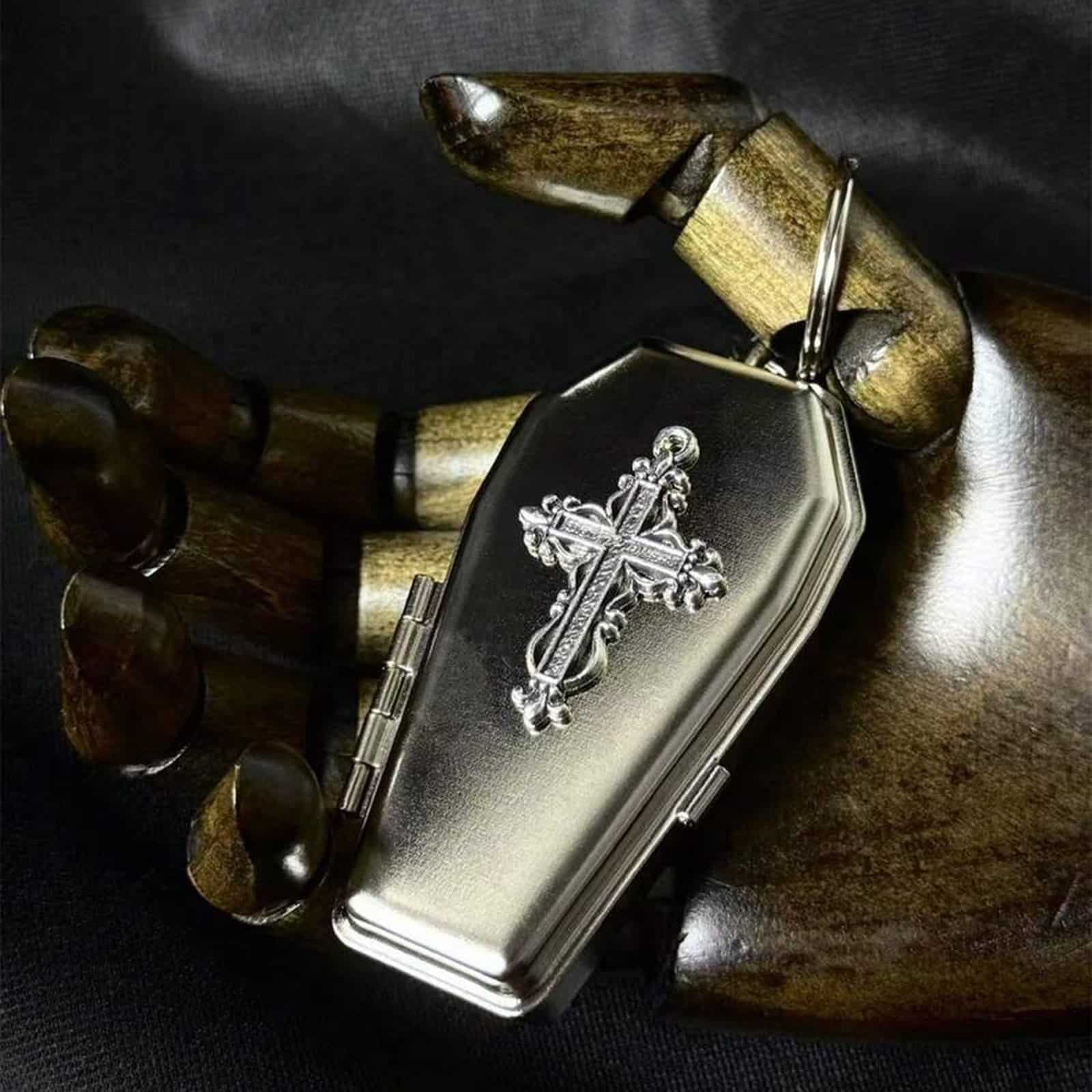 Ab jetzt kein Problem mehr mit dem Mini-Taschenaschenbecher in Sargform mit integrierter Ablagefunktion für die Zigarette.