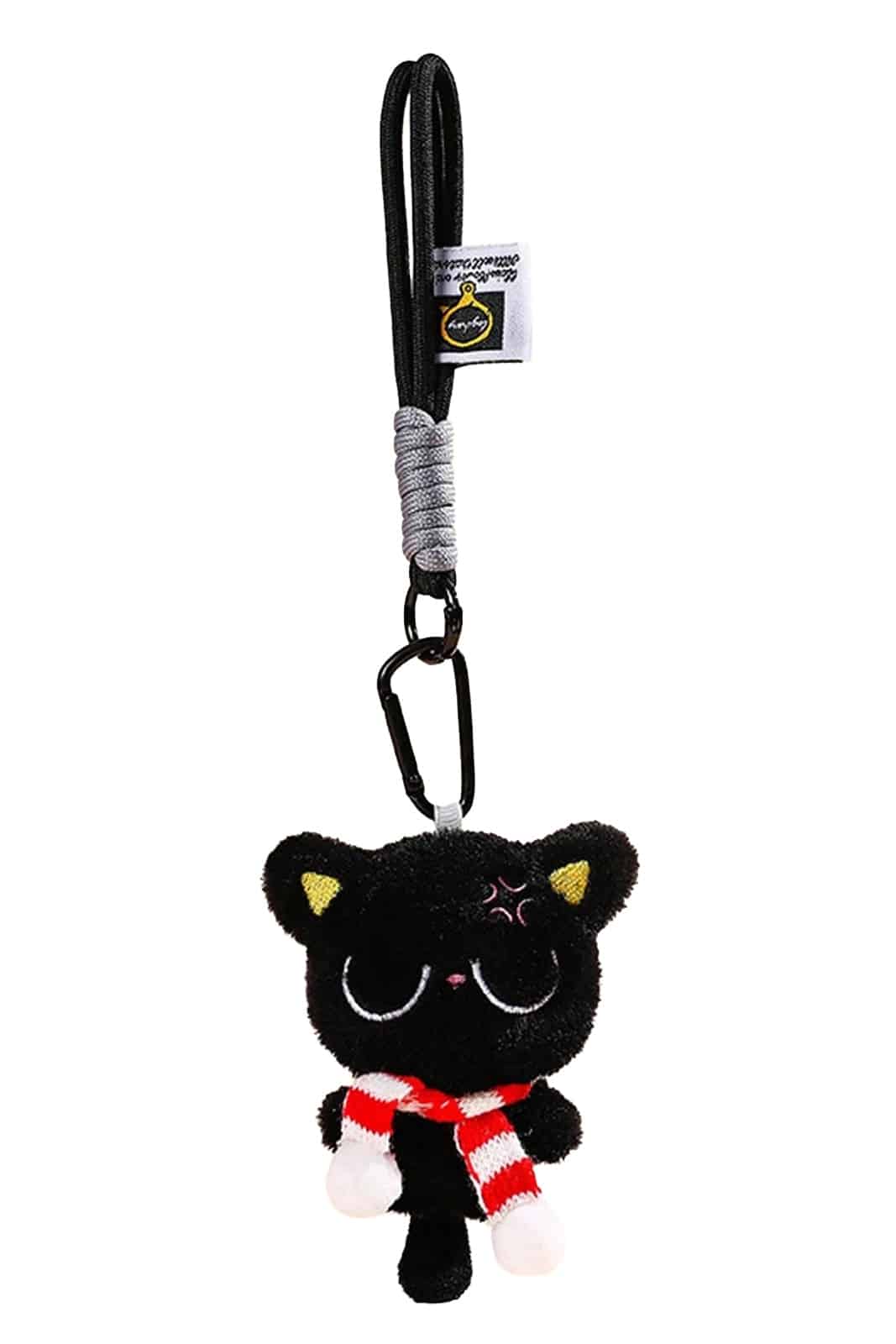Dieser kleine Taschenanhänger kombiniert niedlichen Charme mit einer frech-grummeligen Ausstrahlung. Die schwarze Plüschkatze mit geschlossenen Augen, süßem Schmollblick und rot-weißem Schal ist ein verspieltes Accessoire für Taschen, Rucksäcke oder Schlüssel. Dank Karabiner lässt sich der Anhänger schnell befestigen und setzt einen humorvollen Akzent im Alltag.