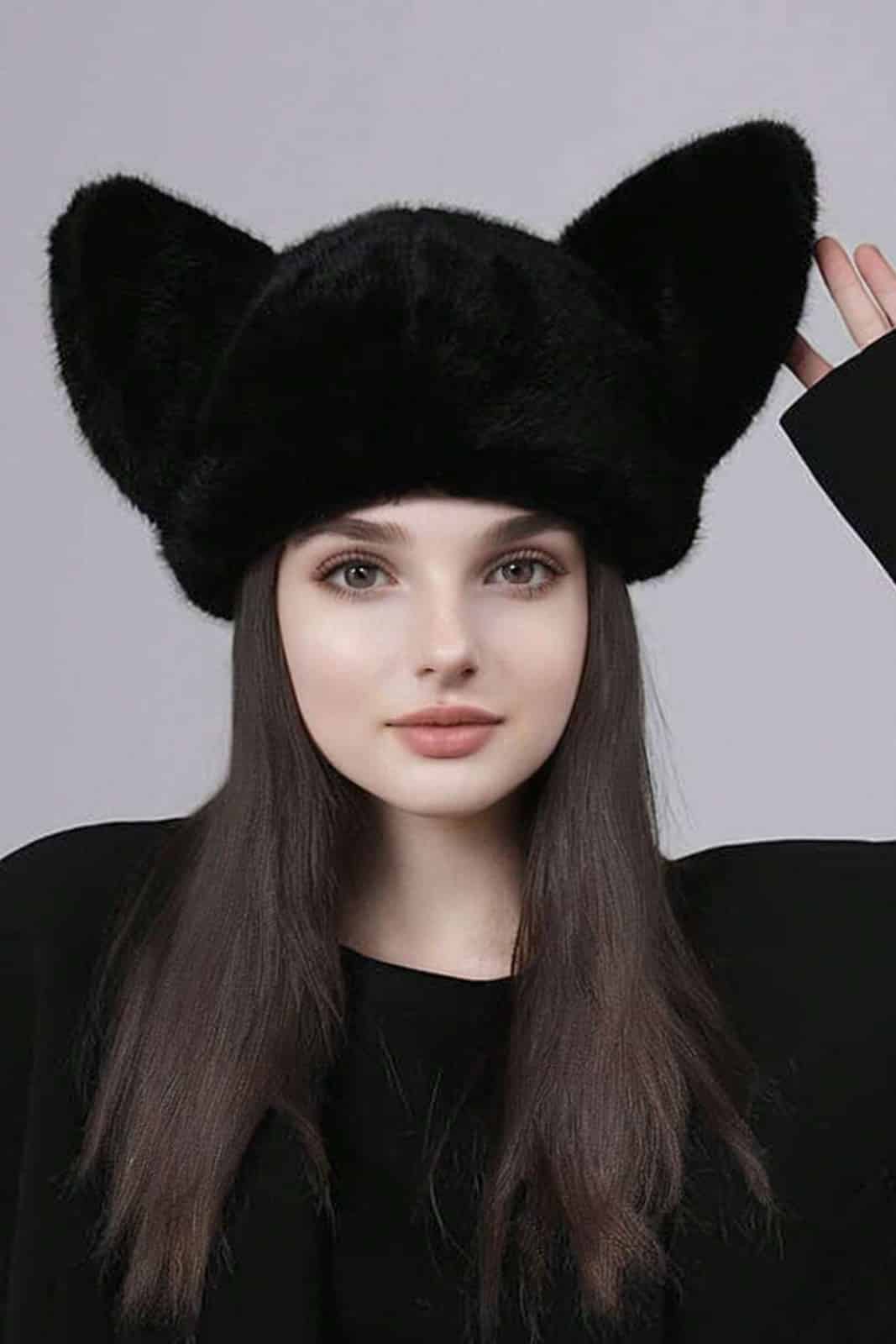 Superwarme Wintermütze aus windundurchlässigem Kunstfell mit süßen Katzenohren.