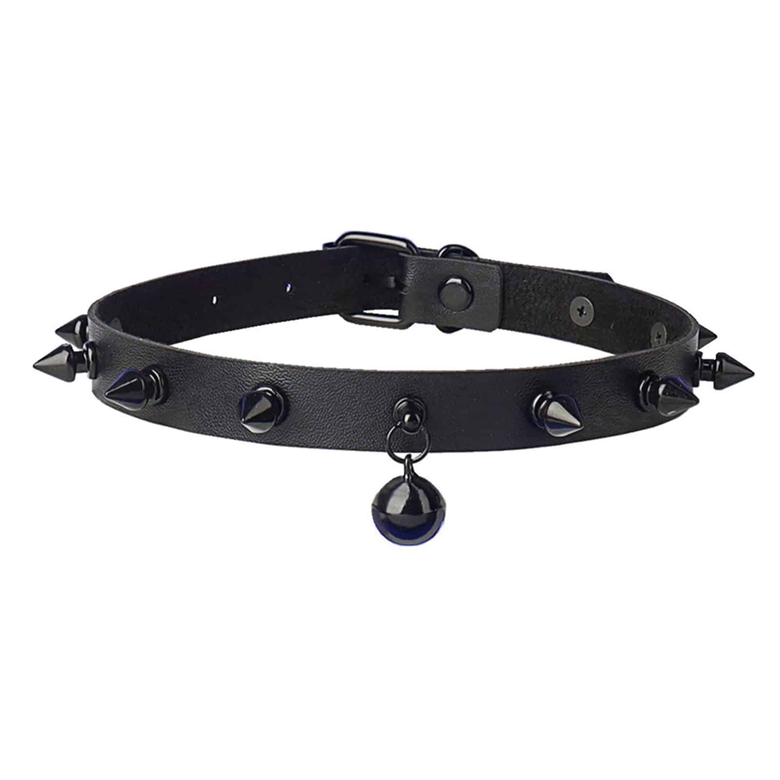 Komplett schwarzes Gothic-Halsband aus Kunstleder. Besetzt mit Nieten und einer Glocke.