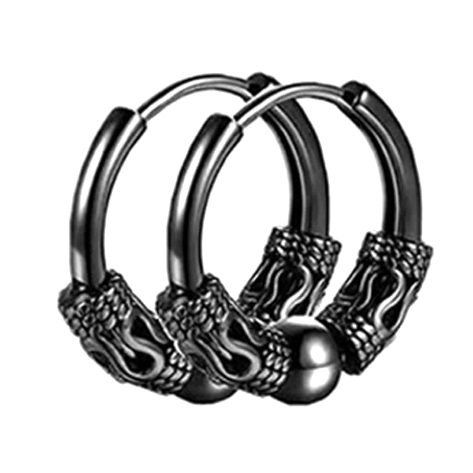 Markante Creolen mit detaillierten Schlangenakzenten und einer zentralen Metallkugel als Blickfang. Das dunkle Finish verstärkt den mystischen, kraftvollen Charakter des Designs und macht die Ohrringe zu einem idealen Accessoire für Gothic-, Punk- und alternative Styles. Kompakt, auffällig und voller Symbolik – perfekt für ausdrucksstarke Looks.