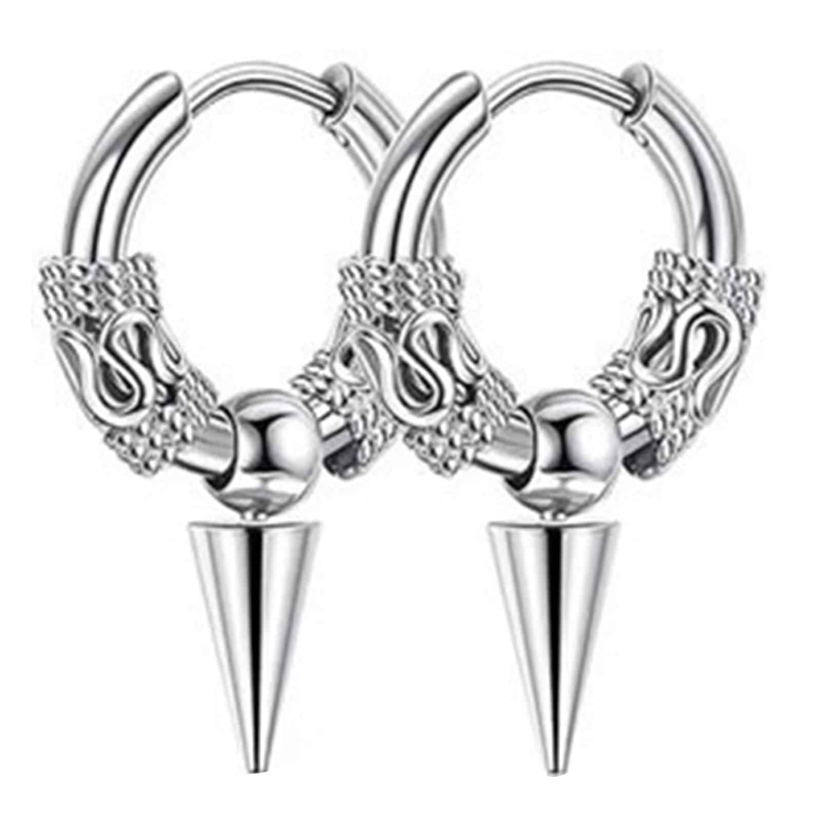 1 Paar elegante silberfarbene Creolen mit detailreichen Schlangenakzenten und einem prägnanten, spitz zulaufenden Anhänger. Das glänzende Finish unterstreicht den kraftvollen, mystisch-edgy Charakter dieser Ohrringe. Ideal für Gothic-, Punk- und alternative Looks – ein markantes Statement-Paar mit stilvoller Präsenz.