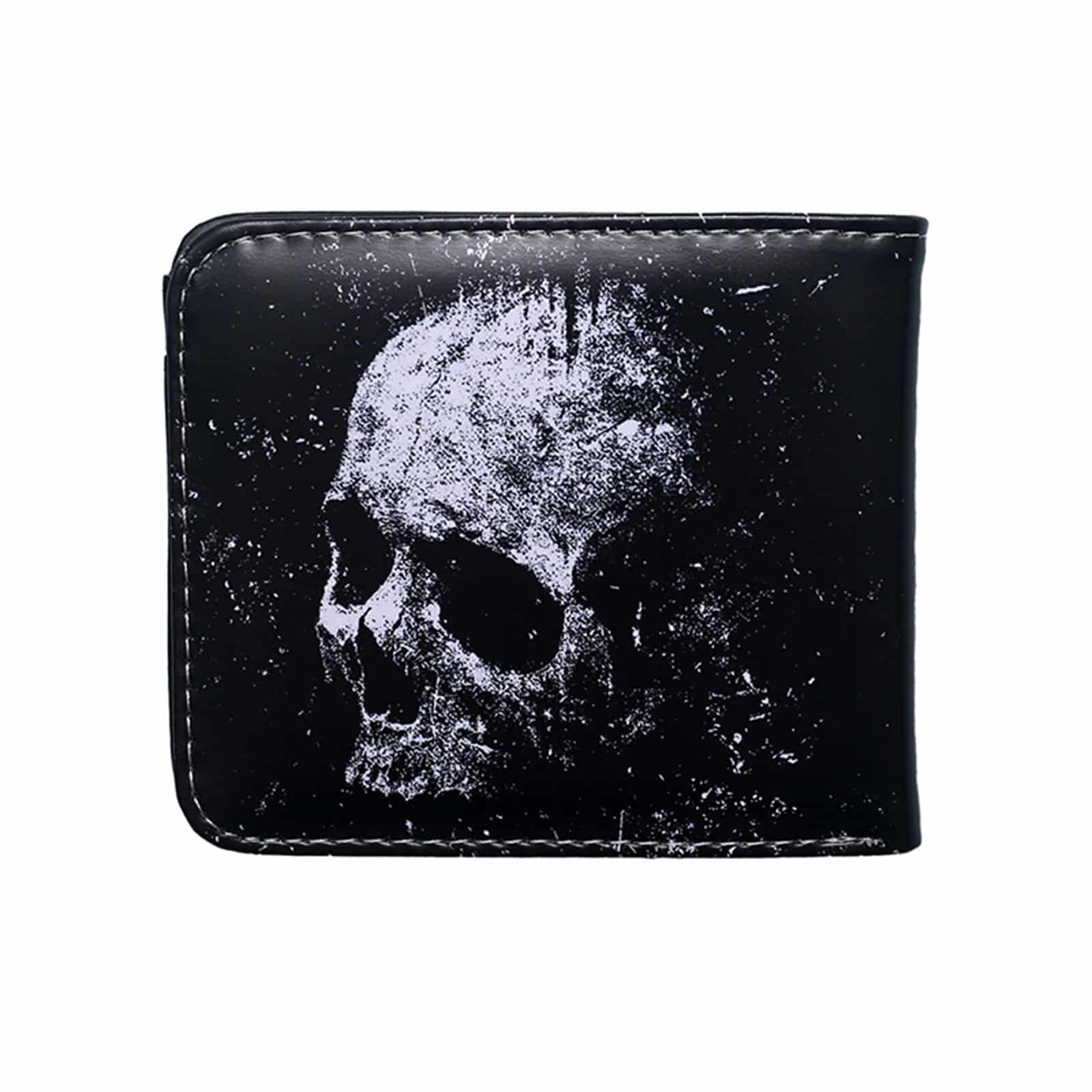 Dunkel, roh und kompromisslos – diese kompakte Geldbörse überzeugt mit einem markanten Skull-Motiv im Used-Look und passt perfekt zu Gothic-, Rock- und Alternative-Styles. Praktisch aufgebaut bietet sie trotz handlicher Größe ausreichend Platz für alles Wichtige im Alltag.