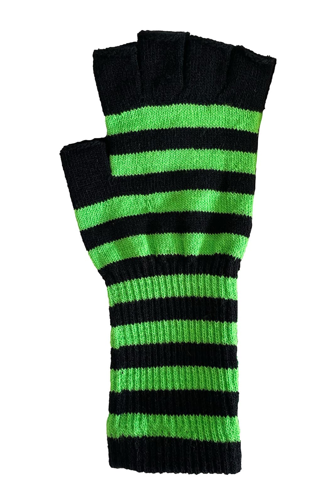 Klassisch, rebellisch und perfekt für alternative Looks – die Midnight Stripes Handschuhe setzen mit ihrem kontrastreichen Streifenmuster ein starkes Statement. Die offenen Fingerspitzen sorgen für Bewegungsfreiheit und machen sie ideal für Alltag, Festivals oder edgy Layering-Styles.