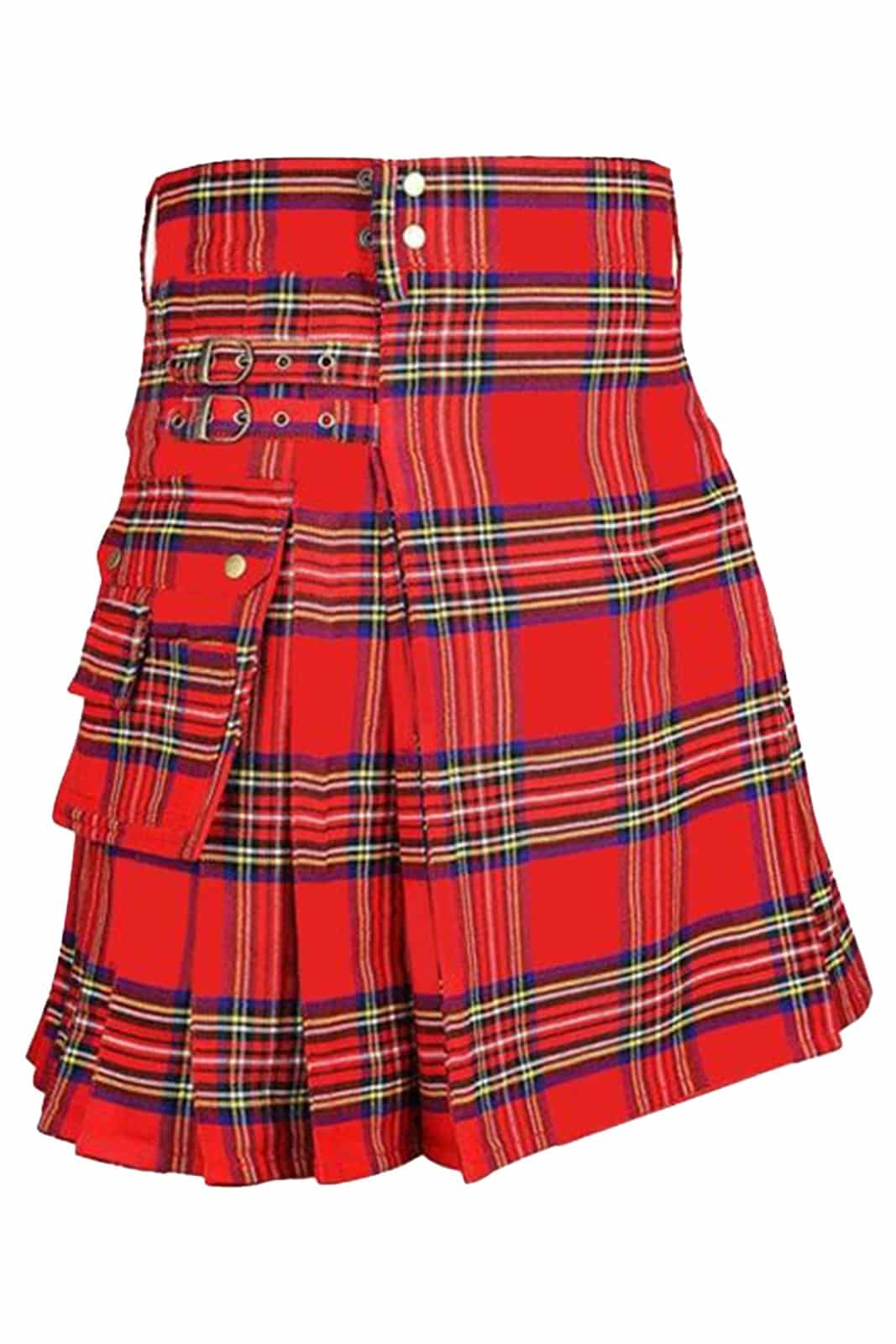 Robuster Kilt aus schwerer Baumwolle mit doppelter Knopfleiste und zwei Schnallen. Ausgestattet mit 3 Taschen und breiten Gürtelschlaufen.