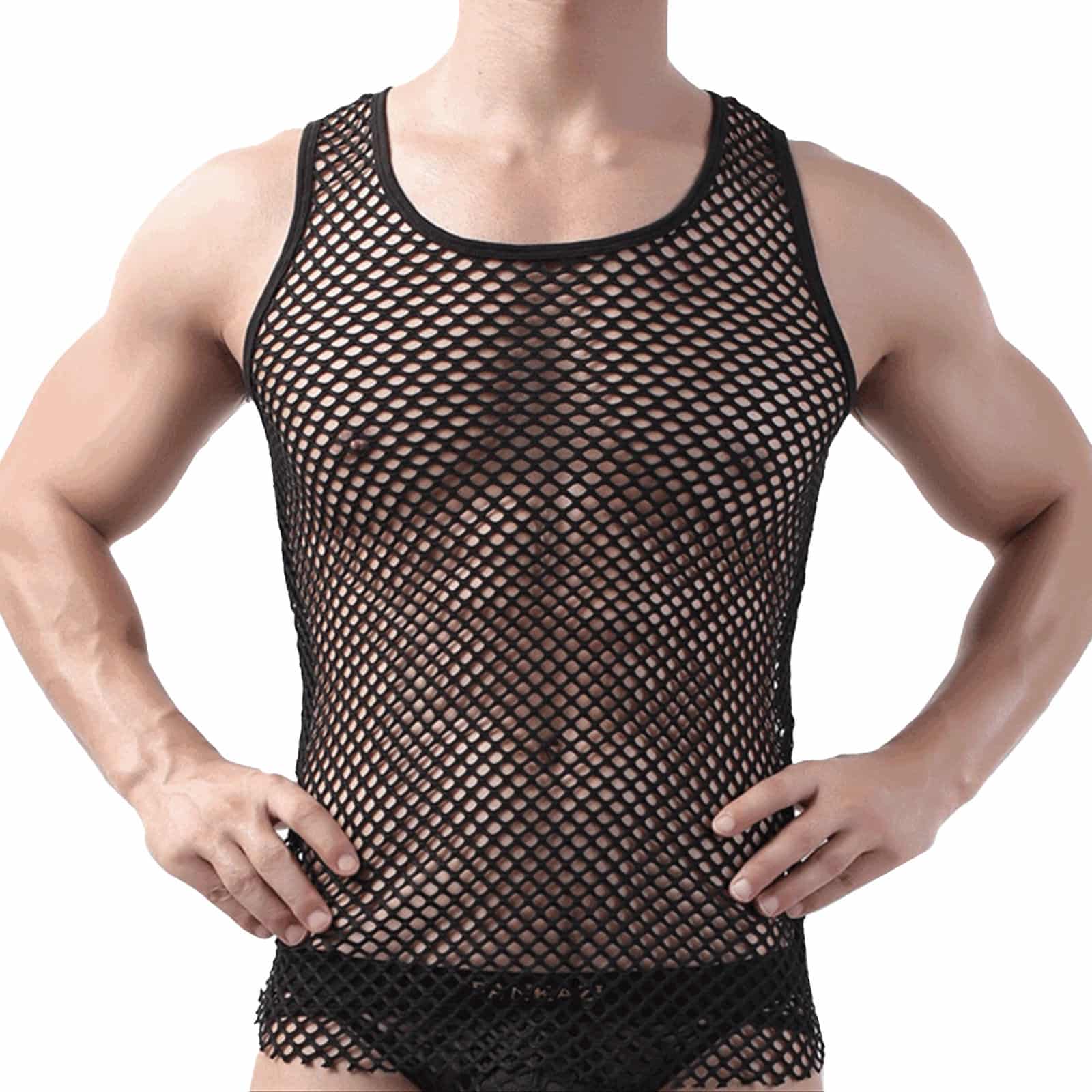 Ärmelloses Herren-Netzshirt aus Stretchmaterial mit Rundhalsausschnitt.