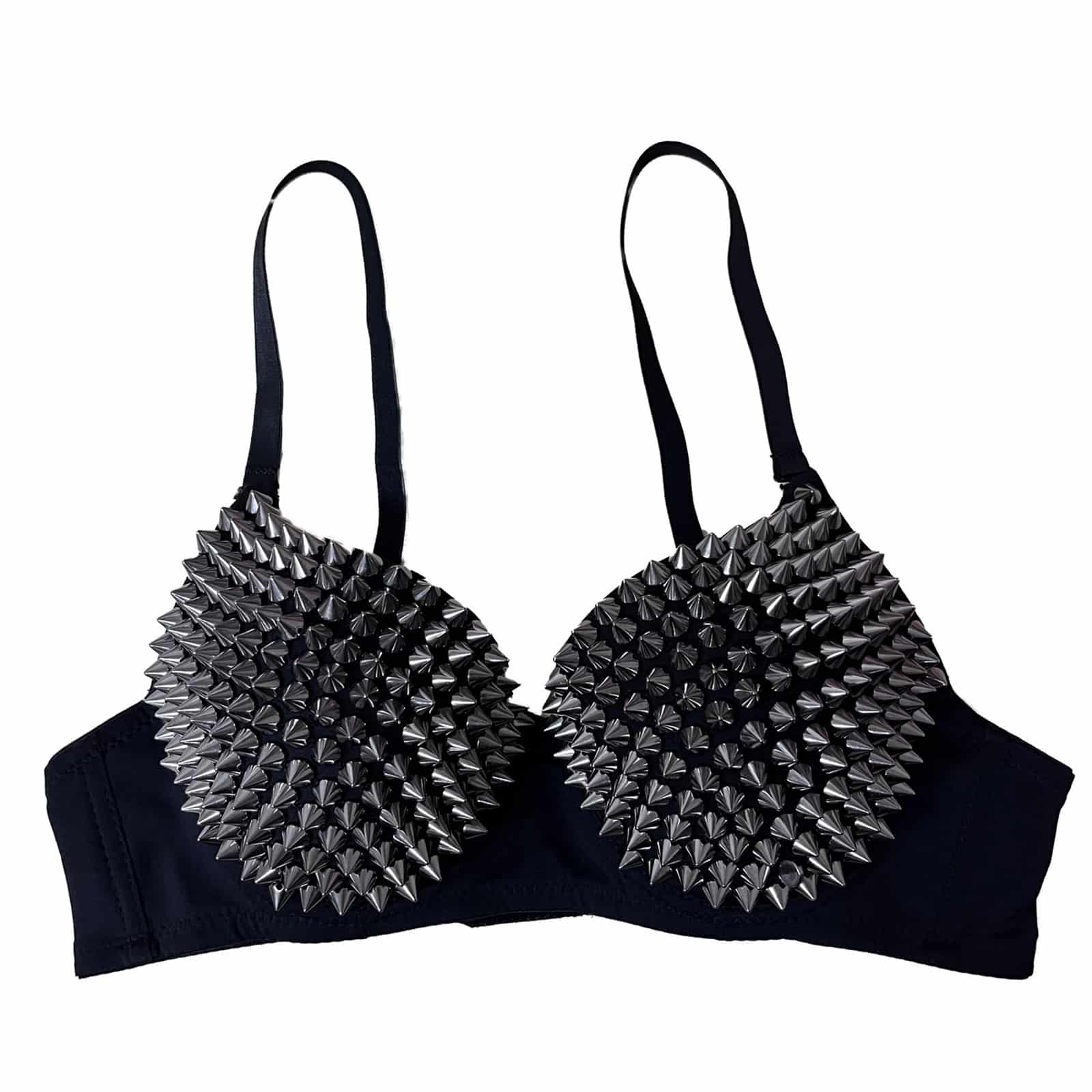 Provokant, rebellisch und absolut kompromisslos – der Spiked Gwendolyne Nieten-BH ist das ultimative Statement-Piece für starke Looks. Dicht besetzt mit dunnkelgrauen Spitznieten setzt er ein kraftvolles Zeichen zwischen Rock, Punk und Dark Glam. Solo getragen oder als Eyecatcher unter Blazer, Mesh oder Harness – dieser BH zieht alle Blicke auf sich.