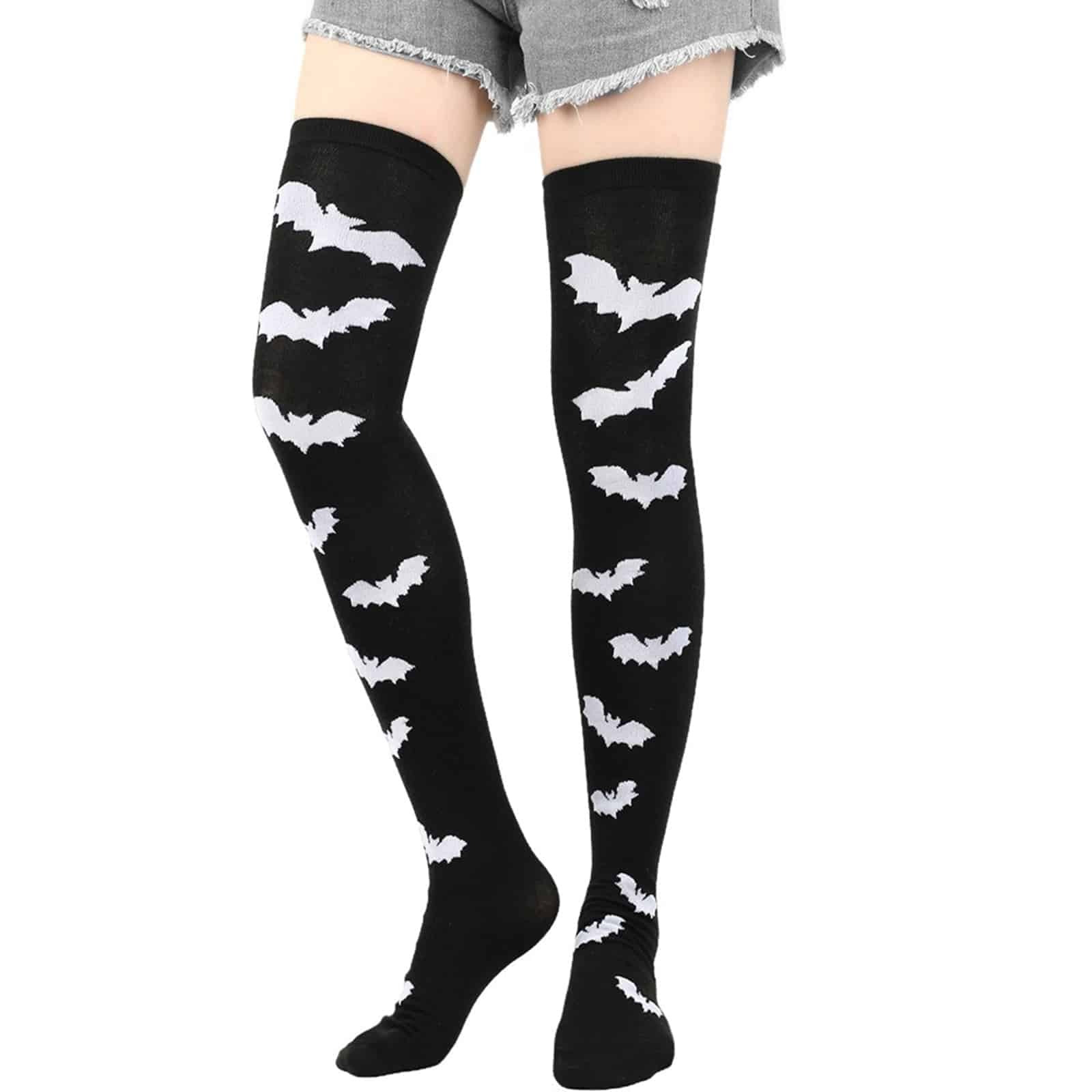 Diese schwarzen Overknees mit kontrastierend weißen Fledermaus-Motiven verleihen jedem Gothic- und Alternative-Outfit einen düsteren Charme. Sie reichen bis über das Knie und setzen ein klares Statement – perfekt für Clubnächte, Festivals oder den Alltag mit einem Hauch von Dark Style.