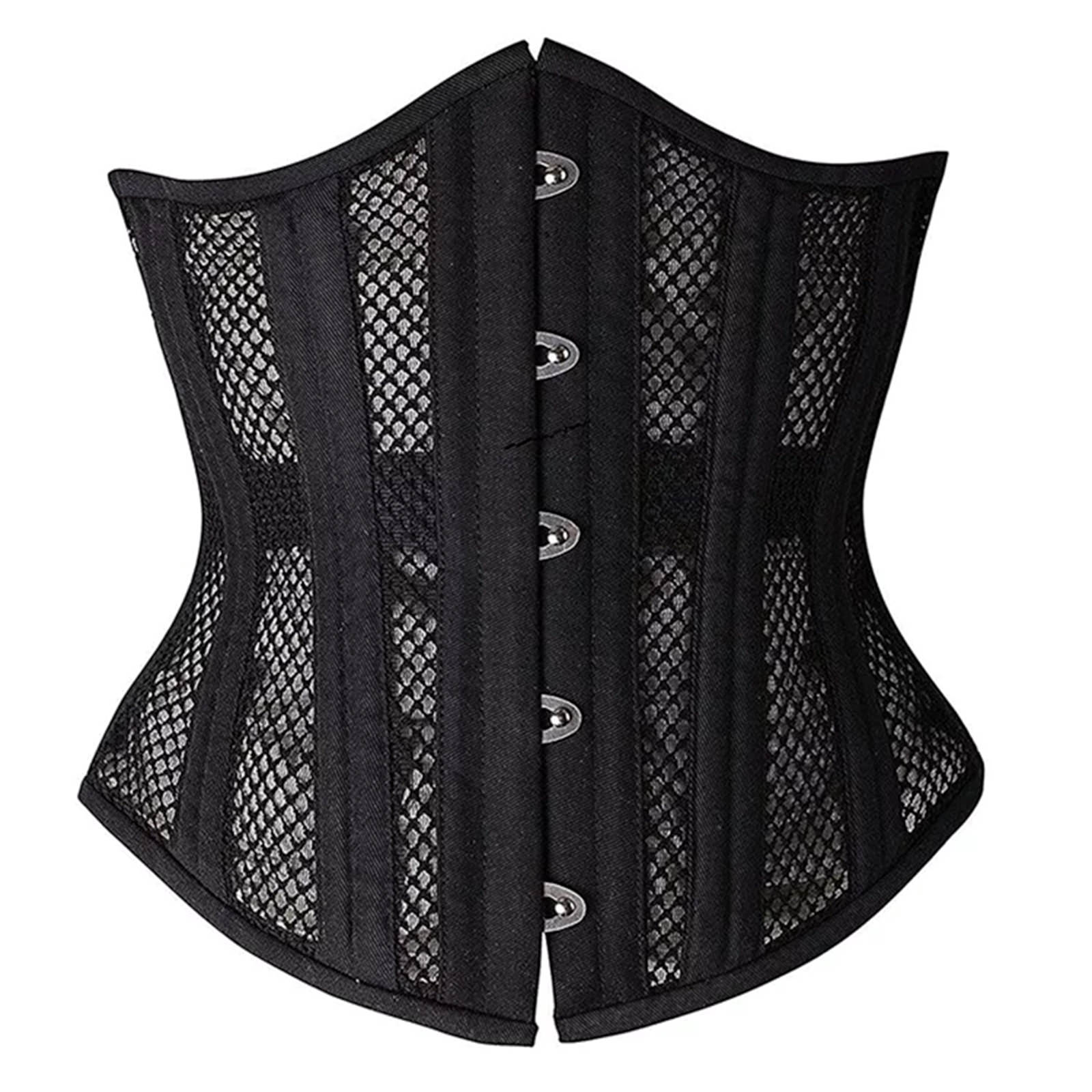 Verführerisches Unterbrustkorsett mit Kunststoffstäbchen, Rückenschnürung und Häkchenverschluß. Das eingearbeitete Netzmaterial ist leicht unterfüttert und etwas durchsichtig. Vielfältig kombinierbar.