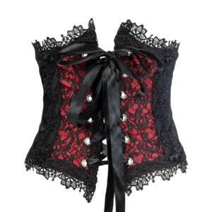 Taillenmieder mit floralem Muster. Vorn mit Haken und Ösen und im Rücken mit Schnürung. Verstärkt mit Kunststoffstäbchen.