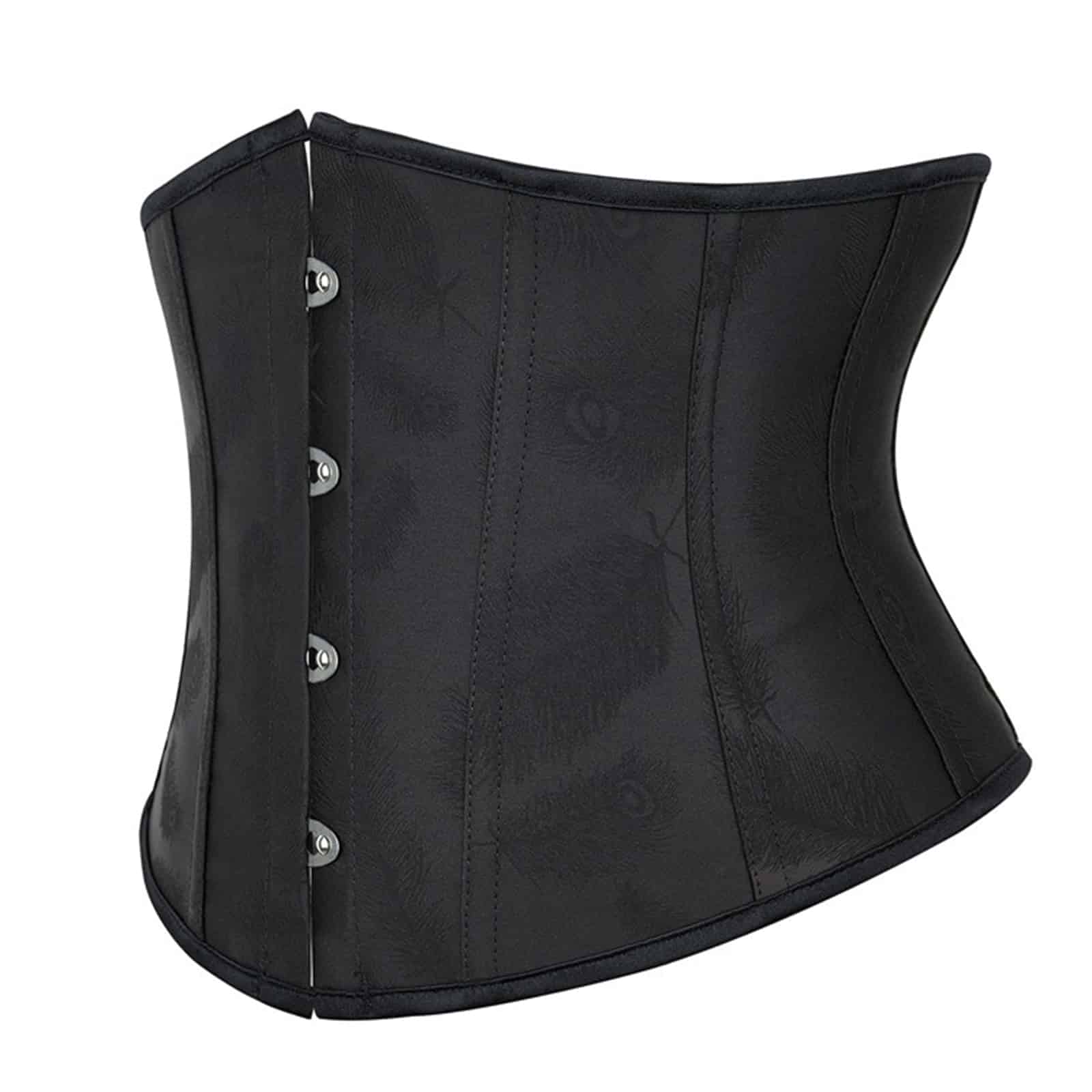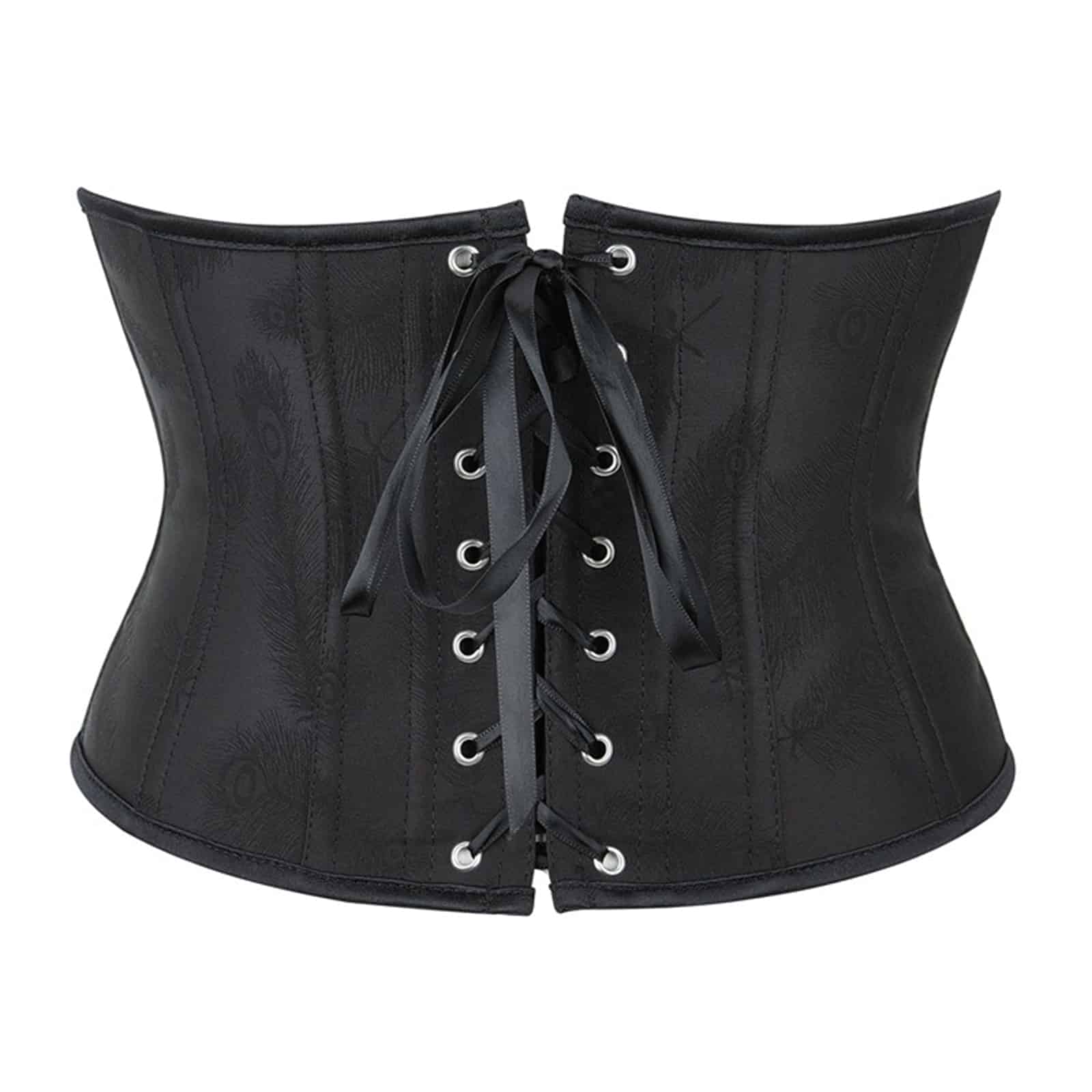 Elegantes Taillenmieder mit dezent schimmerndem Federjacquard und sanfter Sanduhrform. Die Front wird über einen klassischen Metall-Busk geschlossen, während die rückseitige Schnürung eine individuell anpassbare Passform ermöglicht. Stabil gearbeitet und perfekt für feminine Gothic-, Burlesque- oder Abendlooks – ein stilvoller Akzent für eine definierte Silhouette.