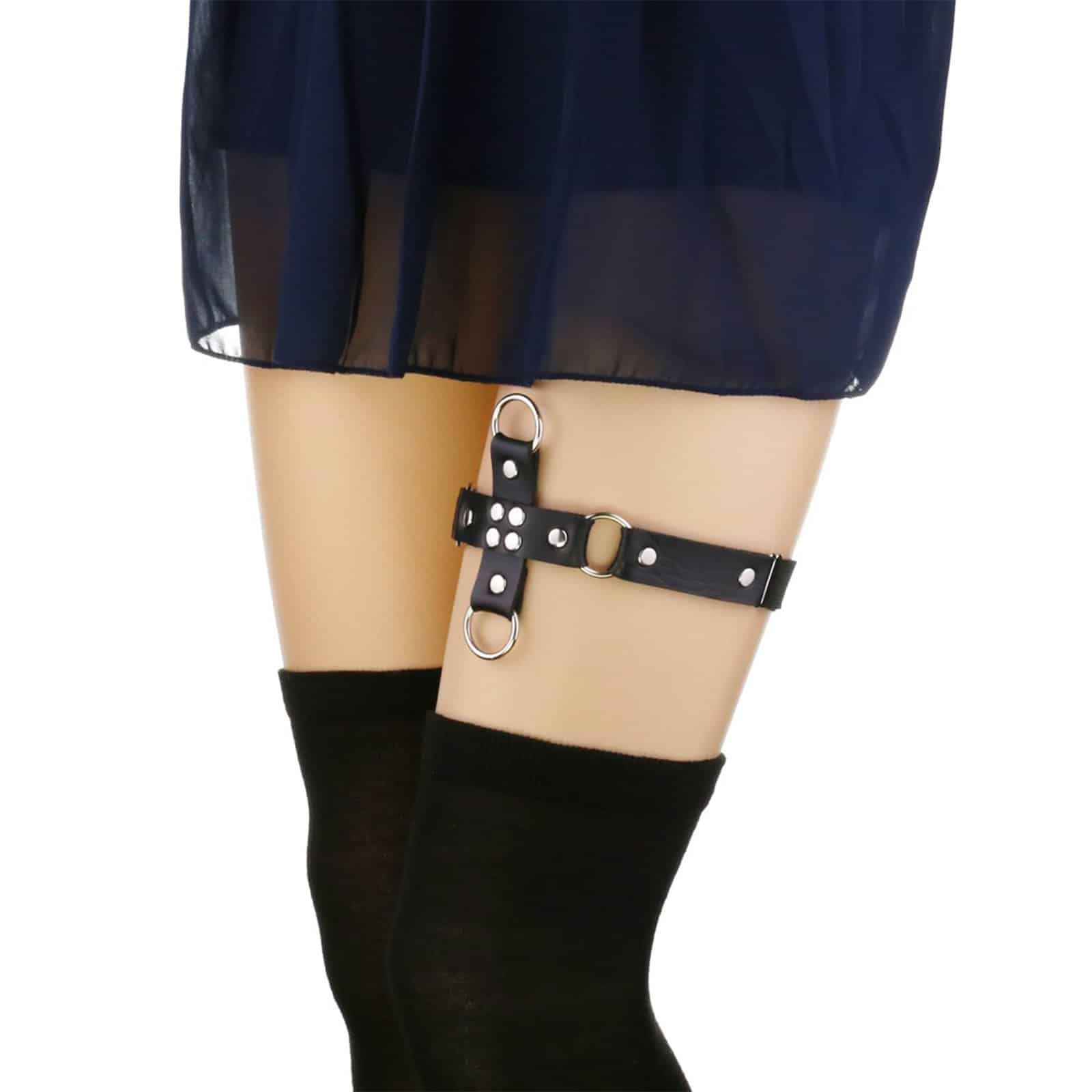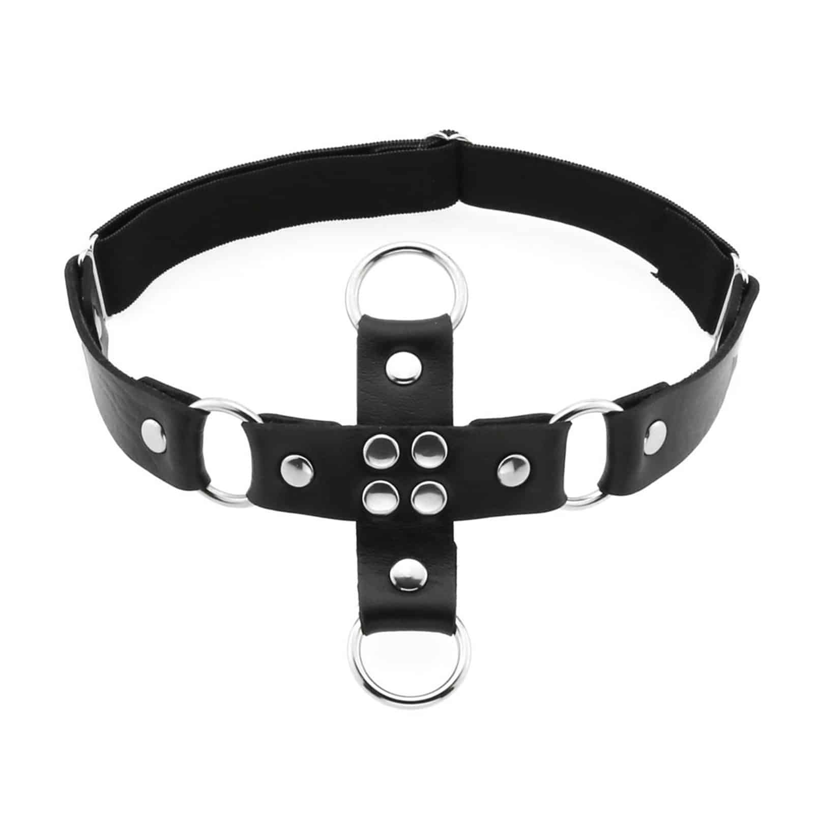 Beingurt aus Kunstlederriemen an der Vorderseite verbunden mit einem elastischen, verstellbaren Polyesterriemen an der Rückseite.