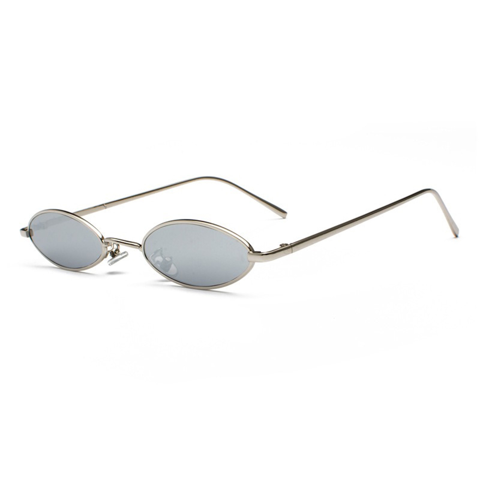 Außergewöhnliche Sonnenbrille mit filigranen, silbernen Bügeln und silbernen Gläsern.